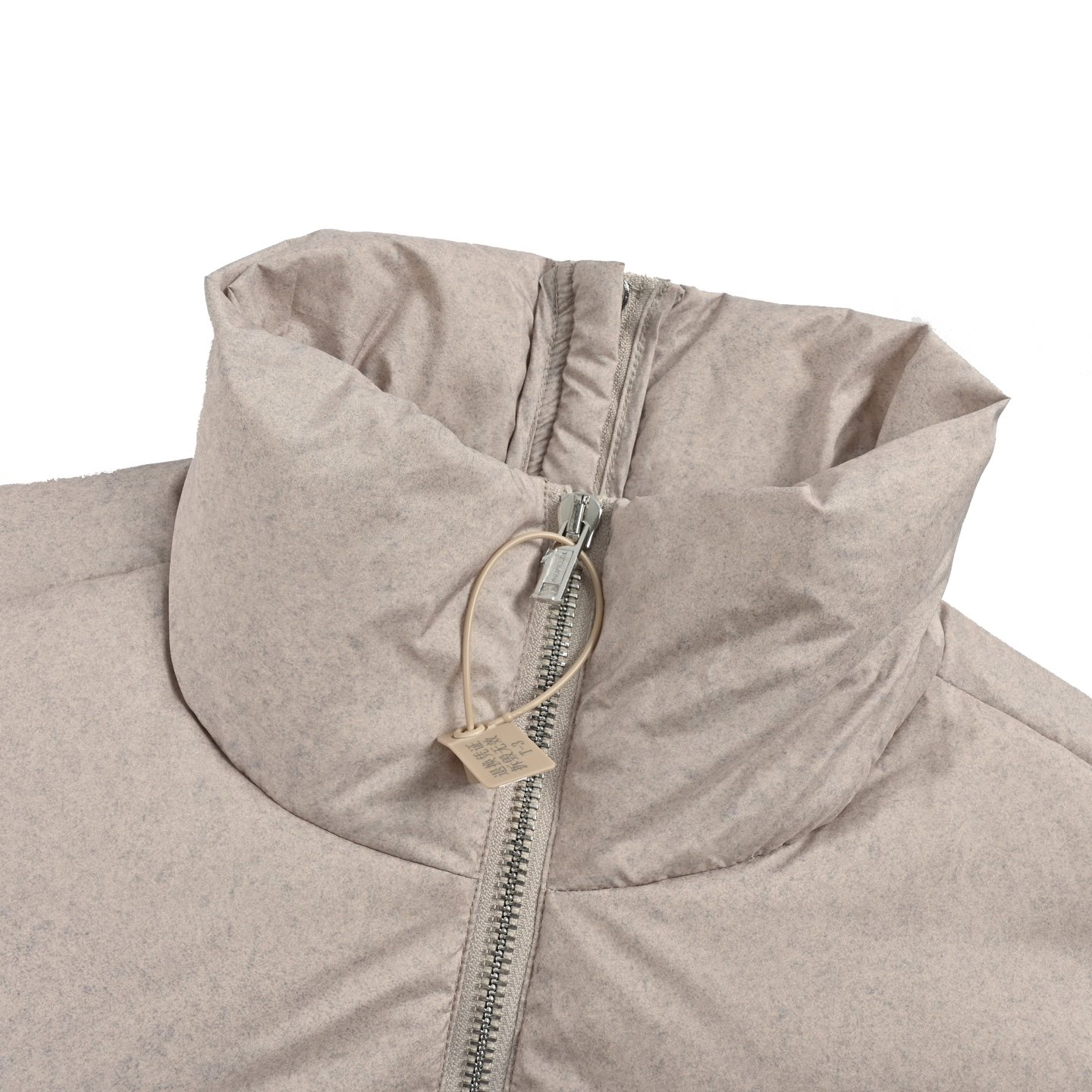 This Moncler x Rick Owens collaboration down jacket features a short jacket design, filled with 90% white duck down for maximum warmth! The outer layer is made of silky tie-dye fabric with a delicate feel. The sand color is understated and versatile. It’s a unisex style, perfect for couples. The back zipper design makes it easy to put on and take off, practical and fashionable. Perfect for autumn and winter, pair it with a hobo bag or post-apocalyptic items to easily create a unique look. It’s a hot item in the high-fashion world.