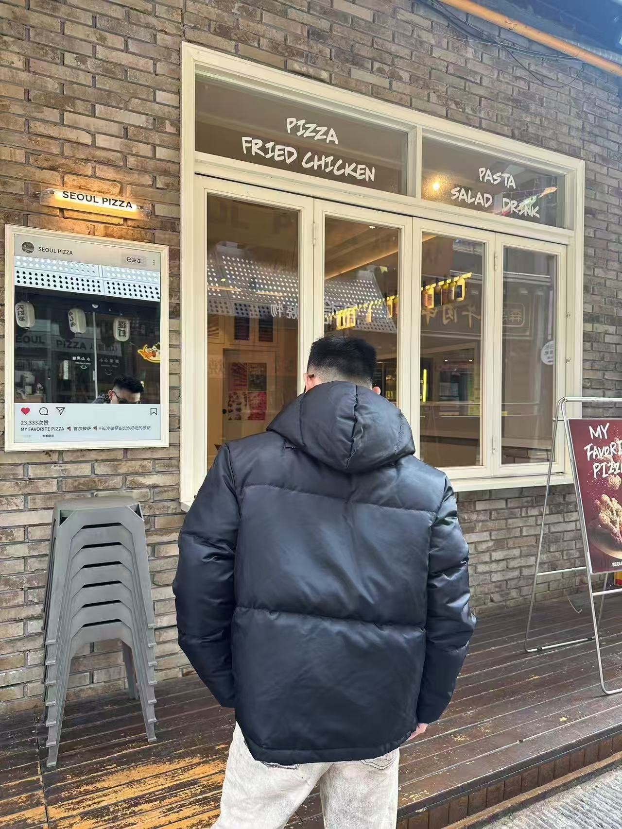 PRADA PRD Nylon Zipper Color Block Hooded Down Jacket – Outfit Inspiration