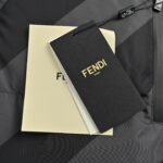 Custom high-density calendered nylon fabric, filled with 90% white duck down meeting new national standards.||||Full, lightweight, and warm, with a cloud-like softness against the skin. Reversible design: one side features a full-print FF classic pattern for a luxurious feel, while the other side boasts clean, individualistic twill lines. The varying shades of brown suit diverse styles. Computer-controlled precision down filling, digital direct-to-garment printing, and laser precision tailoring, combined with neat template stitching, result in exquisite craftsmanship and a premium feel. Fully custom 1:1 Fendi accessories, relaxed fit with a detachable and adjustable hood.
