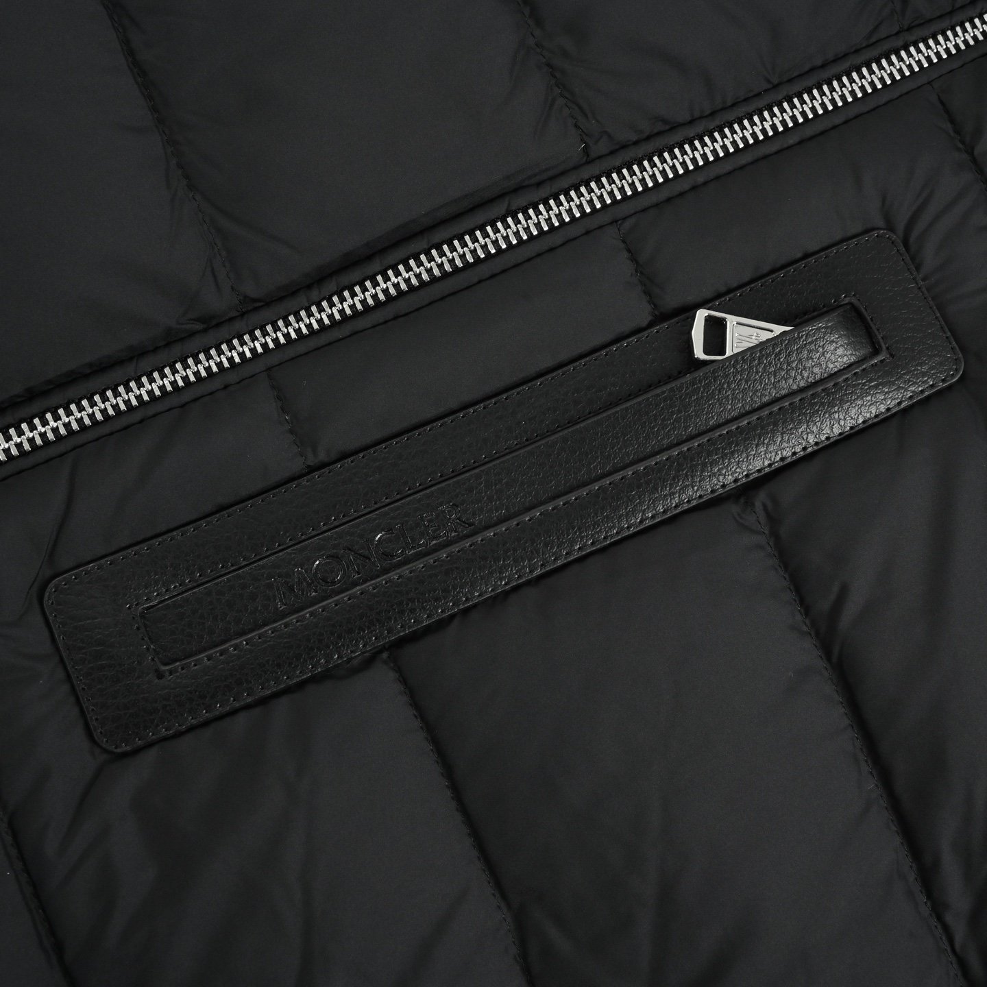 Moncler 25Fw Black Label Leather Zipper Stand Collar Down Jacket
