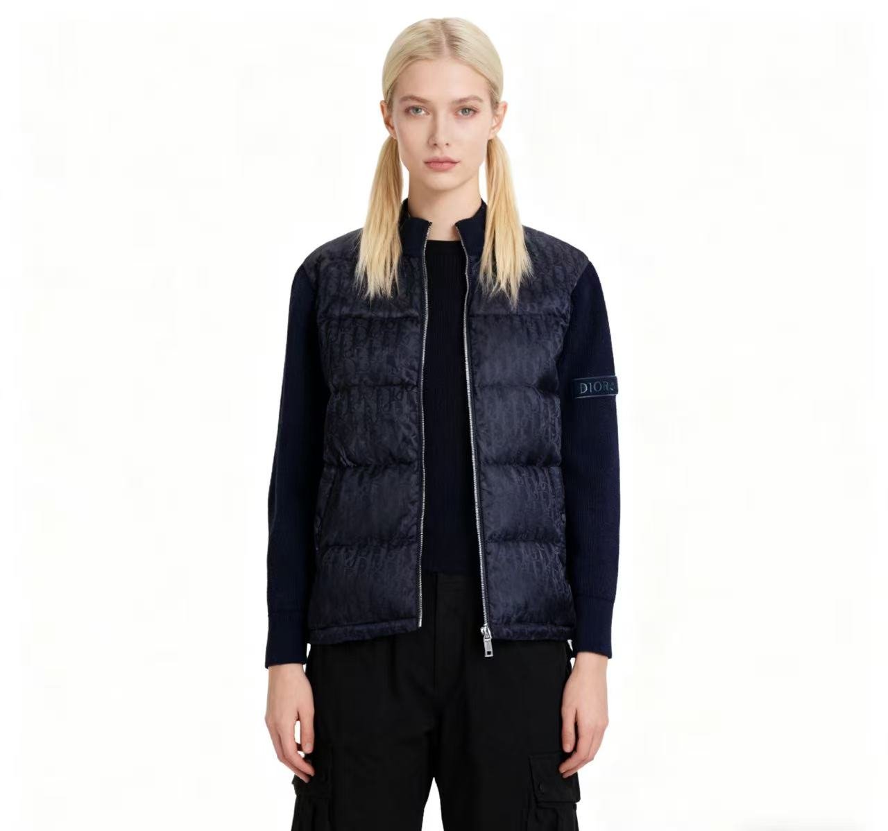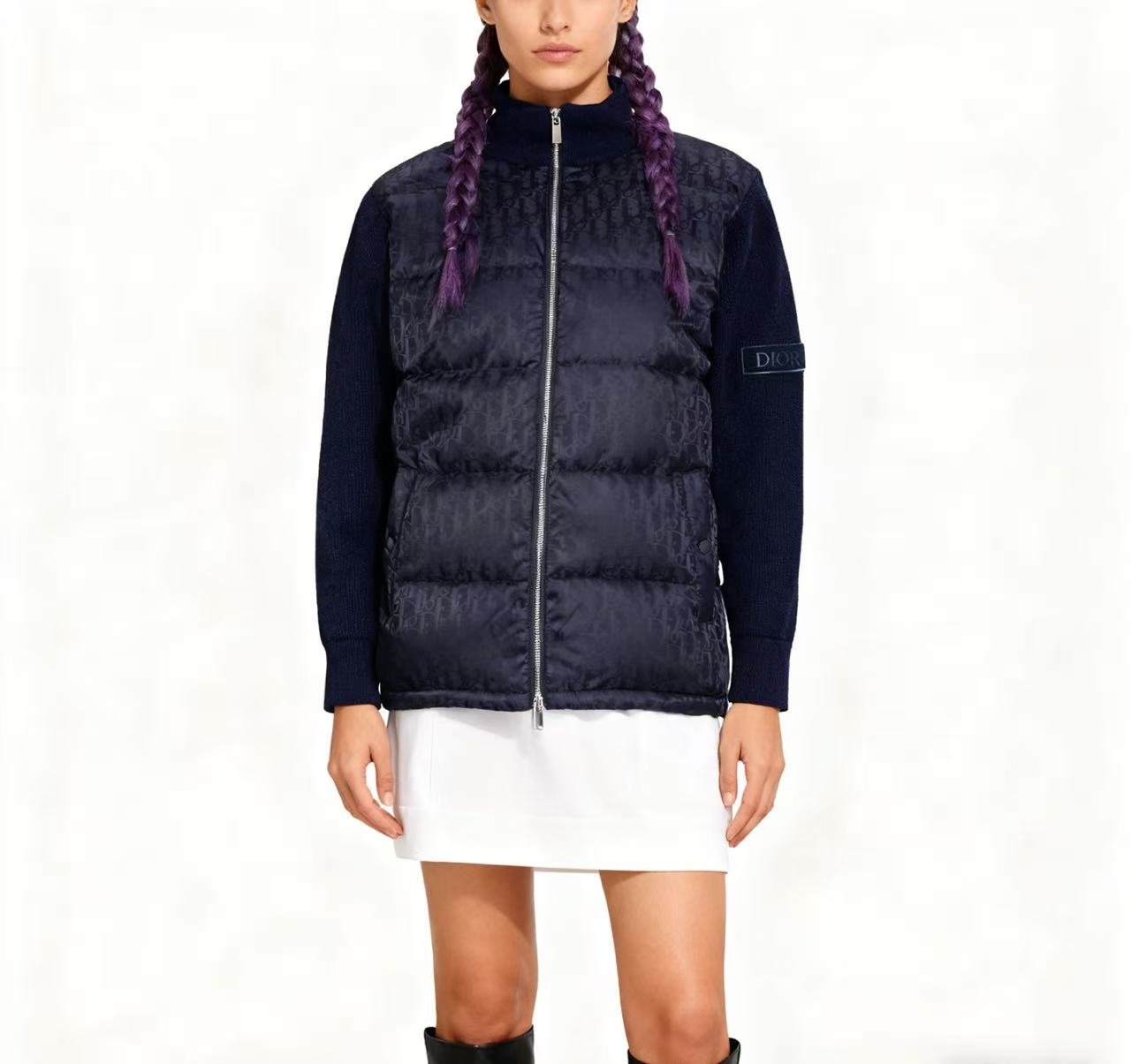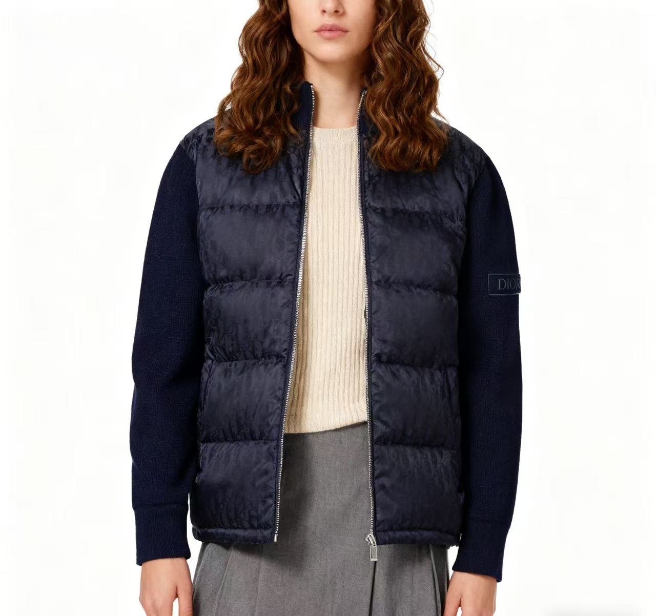 #Dior/Dior Oblique monogram all-over jacquard knit patchwork stand collar down jacket – how it looks on body