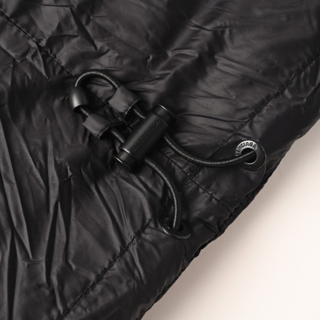 Utilizing technically ripstop fabric, this jacket ensures durability and safety during outdoor activities like skiing, effectively preventing damage from accidental tears. The unique high stand collar provides better neck warmth, and the ample pocket design includes multiple pockets for storing small items needed for skiing, increasing the jacket’s practicality and convenience. The specially treated fabric offers excellent water resistance, keeping the inside dry even in rain or snow. Meanwhile, high-quality filling ensures outstanding warmth. As part of Balenciaga’s ski collection, the design incorporates the brand’s unique style and artistry, showcasing a distinctive fashion appeal. Balenciaga’s meticulous attention to detail is also evident in this down jacket; from the zippers and buttons to the selection of other accessories, the brand’s exquisite craftsmanship and high-quality standards are evident.