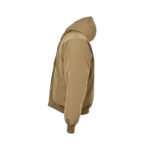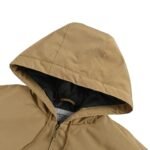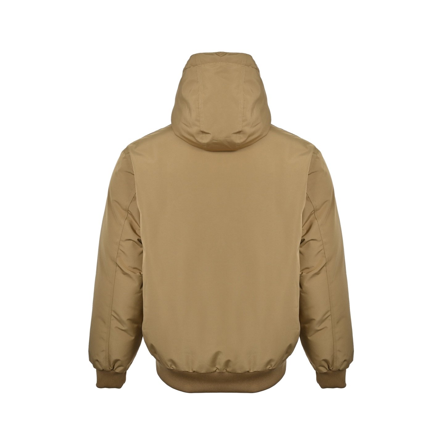 The fabric isn’t soft cotton; it’s filled with granular thermal cotton, providing warmth comparable to a down jacket. Even the hood is puffed up with cotton. It features YKK brass hardware, a high-quality zipper, Velcro closures, and an anti-theft inner pocket to prevent phone loss. The hooded design combines the ruggedness of the J130 with the warmth of a down jacket, offering the structure and style of the J130 while maintaining its down-like feel. A true hexagonal warrior! Wearing it feels like being tightly embraced—it’s so thick! Even the sleeves are fully padded. The ribbed hem is very snug and doesn’t let in any wind.