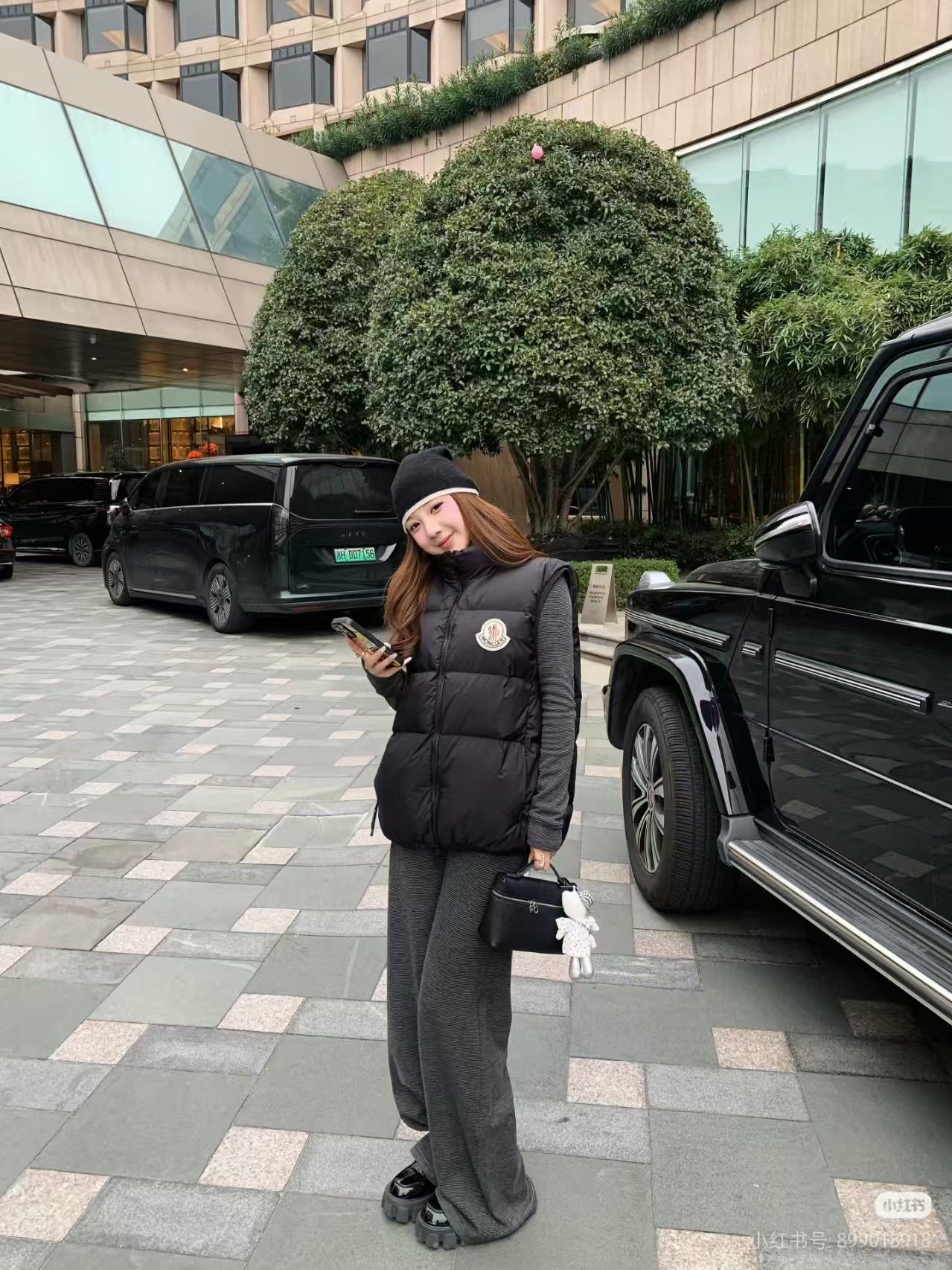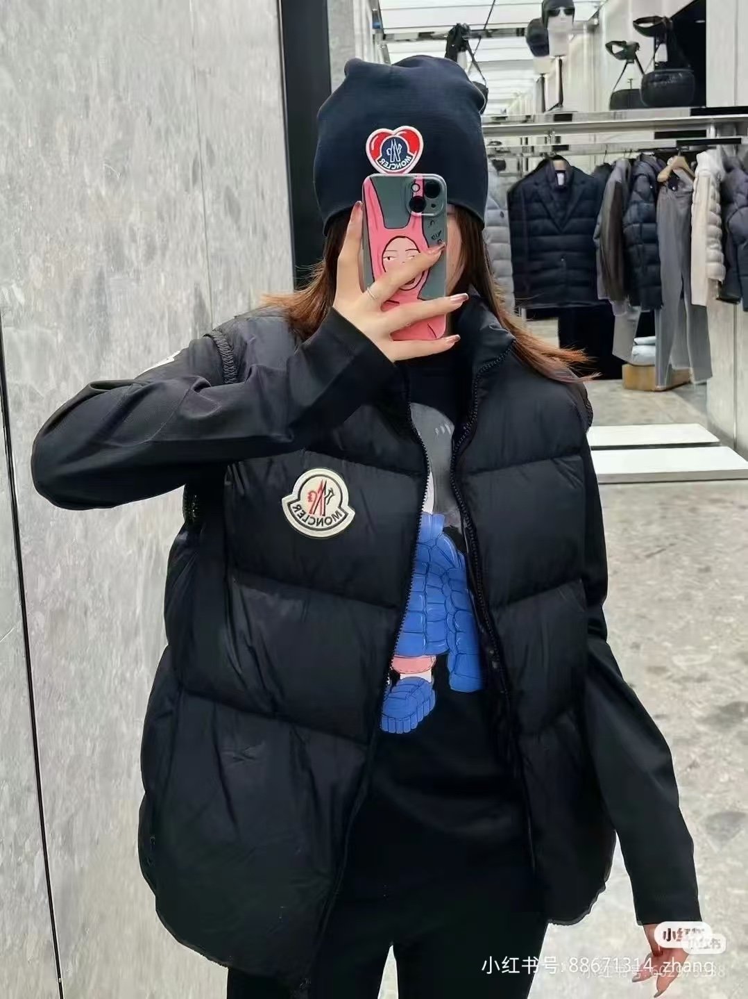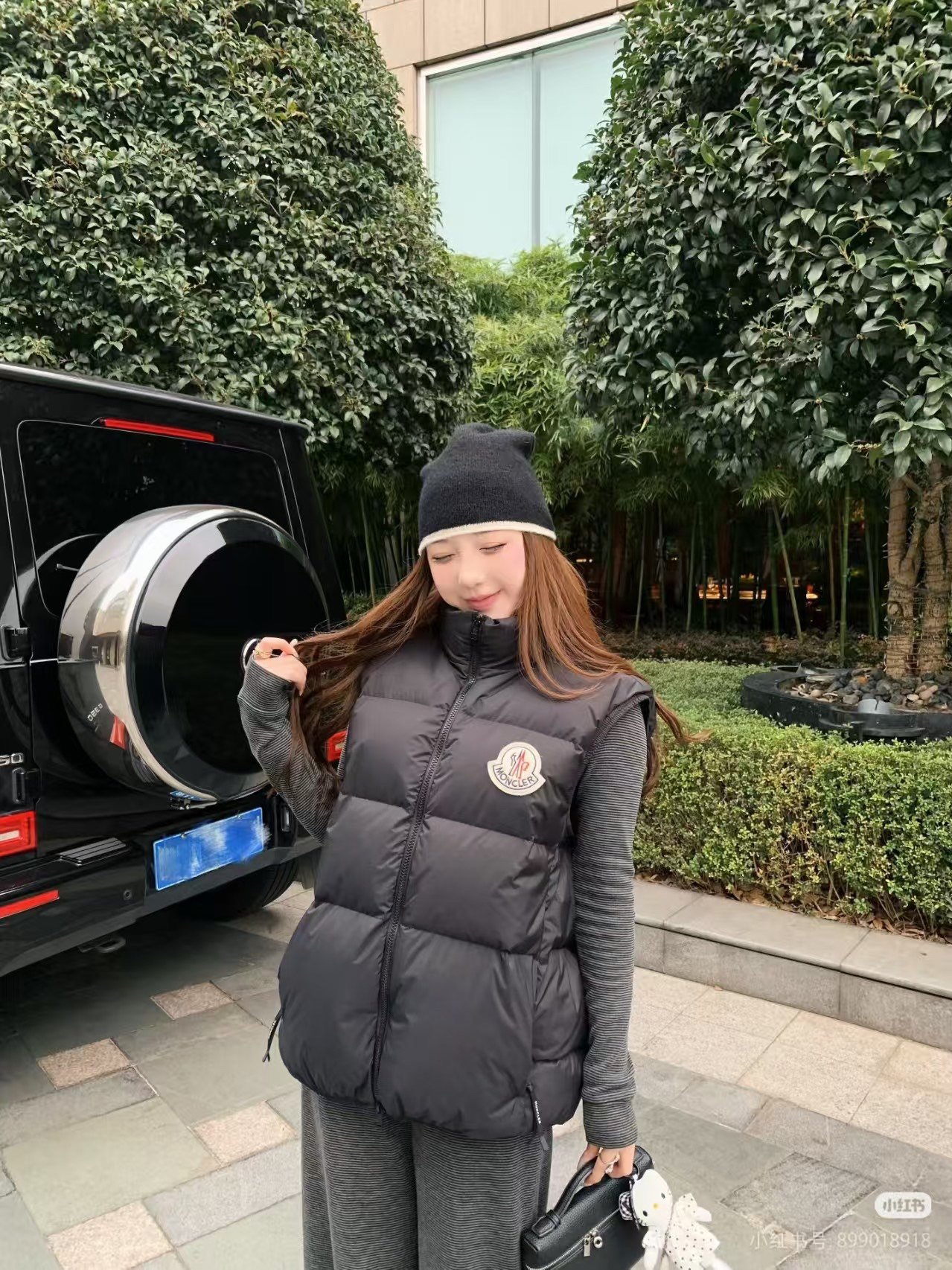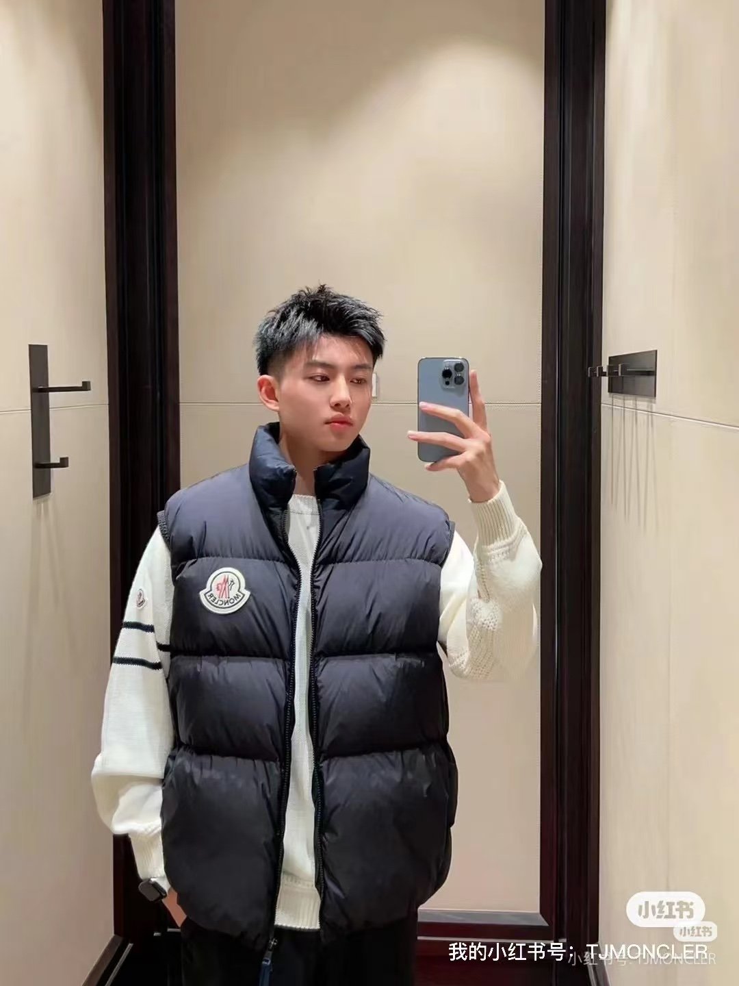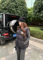 Moncler Alma down vest with large logo – how it looks on #