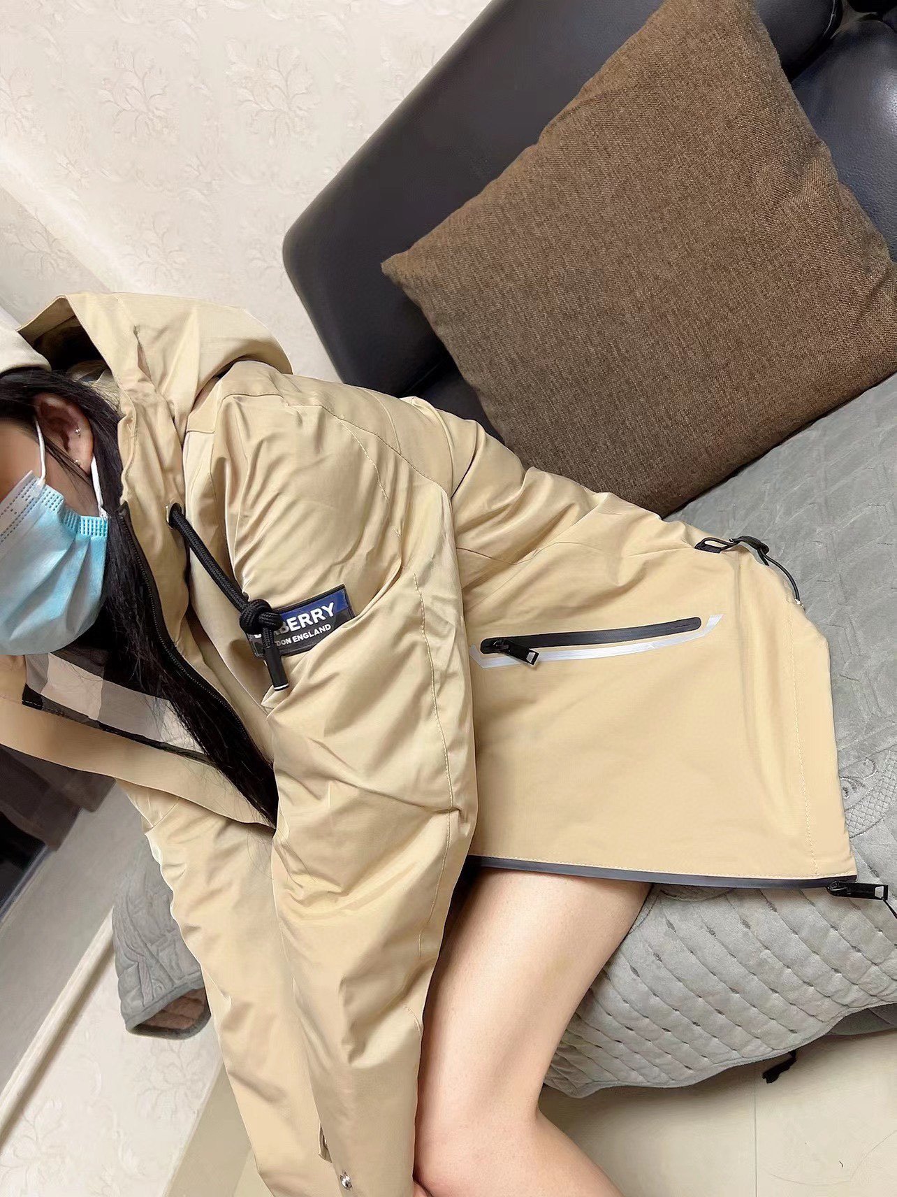 #Burberry 22Fw down jacket with silicone badge on the arm – how it looks on the body