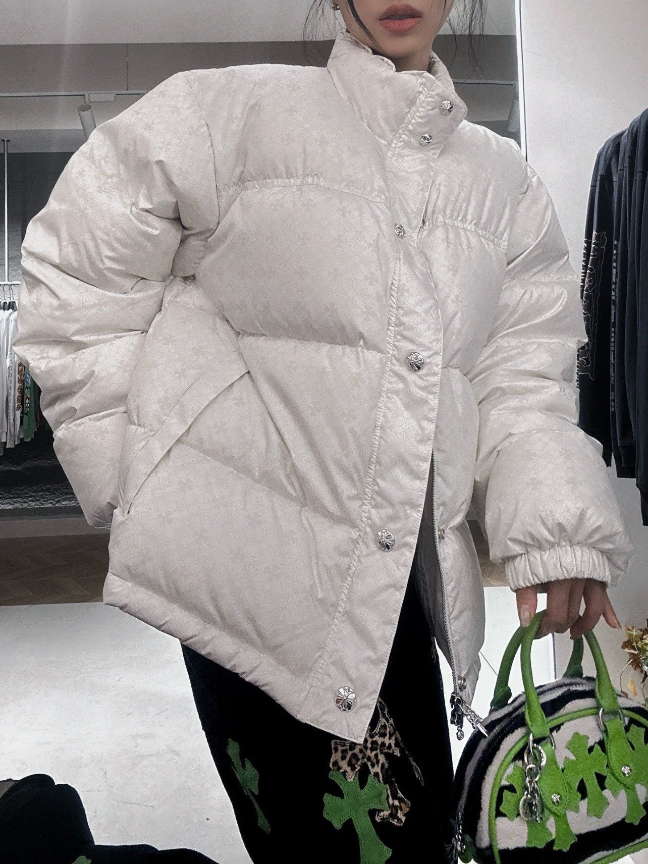 Chrome Hearts CH jacquard down jacket – how it looks on! #