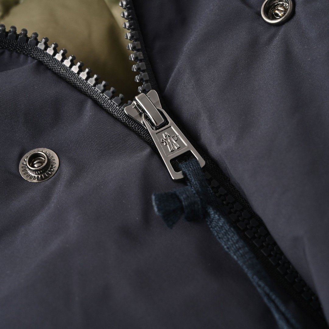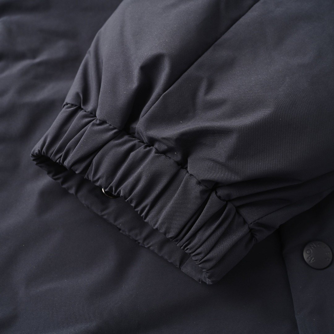 Made from 100% polyester, this microfiberized fabric is made extremely fine, significantly increasing its surface area and resulting in a soft, smooth feel similar to natural fibers. The high-density weaving method creates a compact structure, imparting wrinkle resistance, windproofing, warmth, and abrasion resistance. The lining is made from 100% polyamide, whose high-density and tight weaving prevents tiny down fibers from escaping through the fabric. Its smooth surface enhances donning and doffing, while its excellent abrasion and tear resistance ensures it withstands damage from frequent use. Its lightweight and soft texture doesn’t compromise its overall weight. Made from 90% white duck down, weighing 210g, it ensures exceptional warmth. The fleece is rigorously screened and processed to prevent linting, ensuring durability. The lining is quilted with imported No. 7 needles and down-resistant fine thread, resulting in 13 stitches per three centimeters for a straight, seamless seam. The stand-up collar enhances the overall look, creating a clean, streamlined look. It wraps nicely around the neck, preventing drafts and providing excellent warmth. Whether paired with a scarf or worn alone, the design creates a refined, clean, and effortless look. Sizes: 1 2 3 4