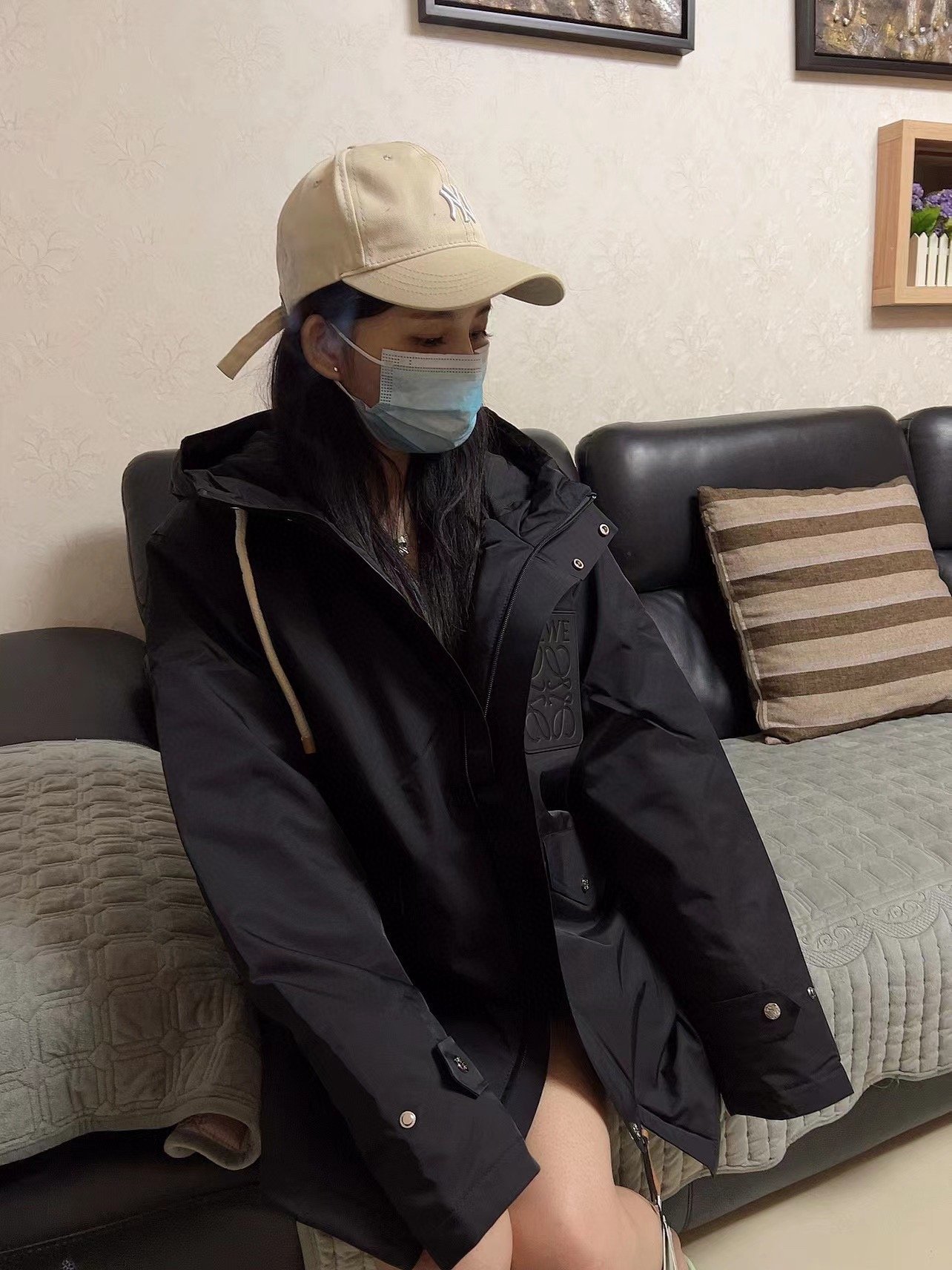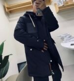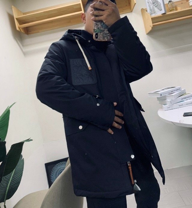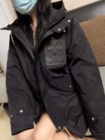 #Loewe 22Fw Leather Label Hooded Mid-Length Down Jacket – On-body Look