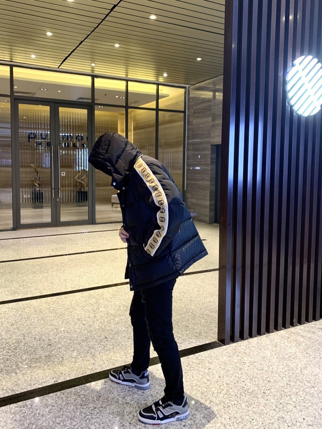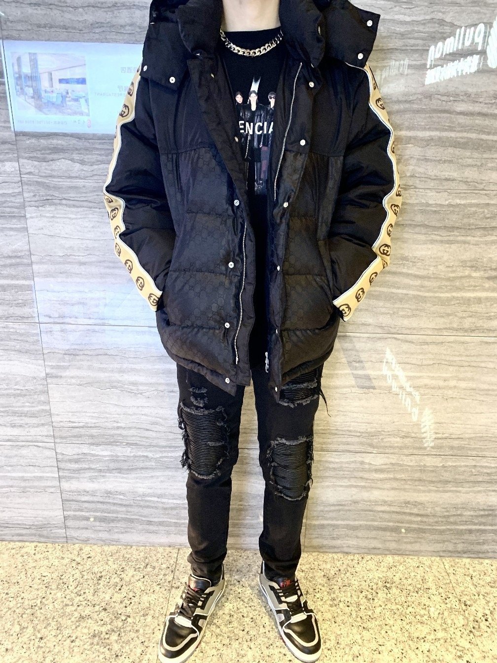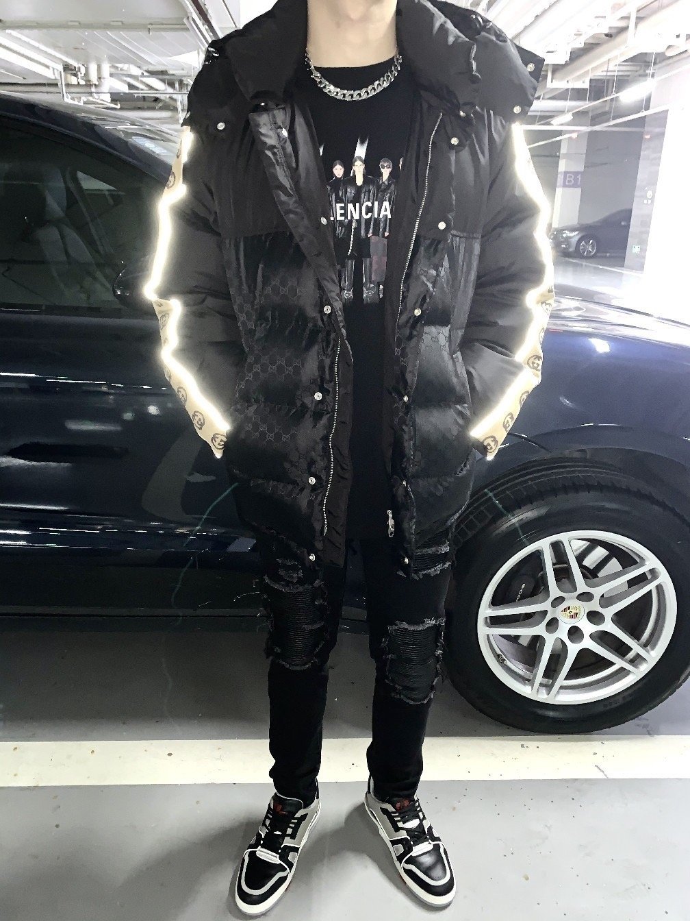 #Gucci Reflective Webbing Pattern Down Jacket – On-body Look