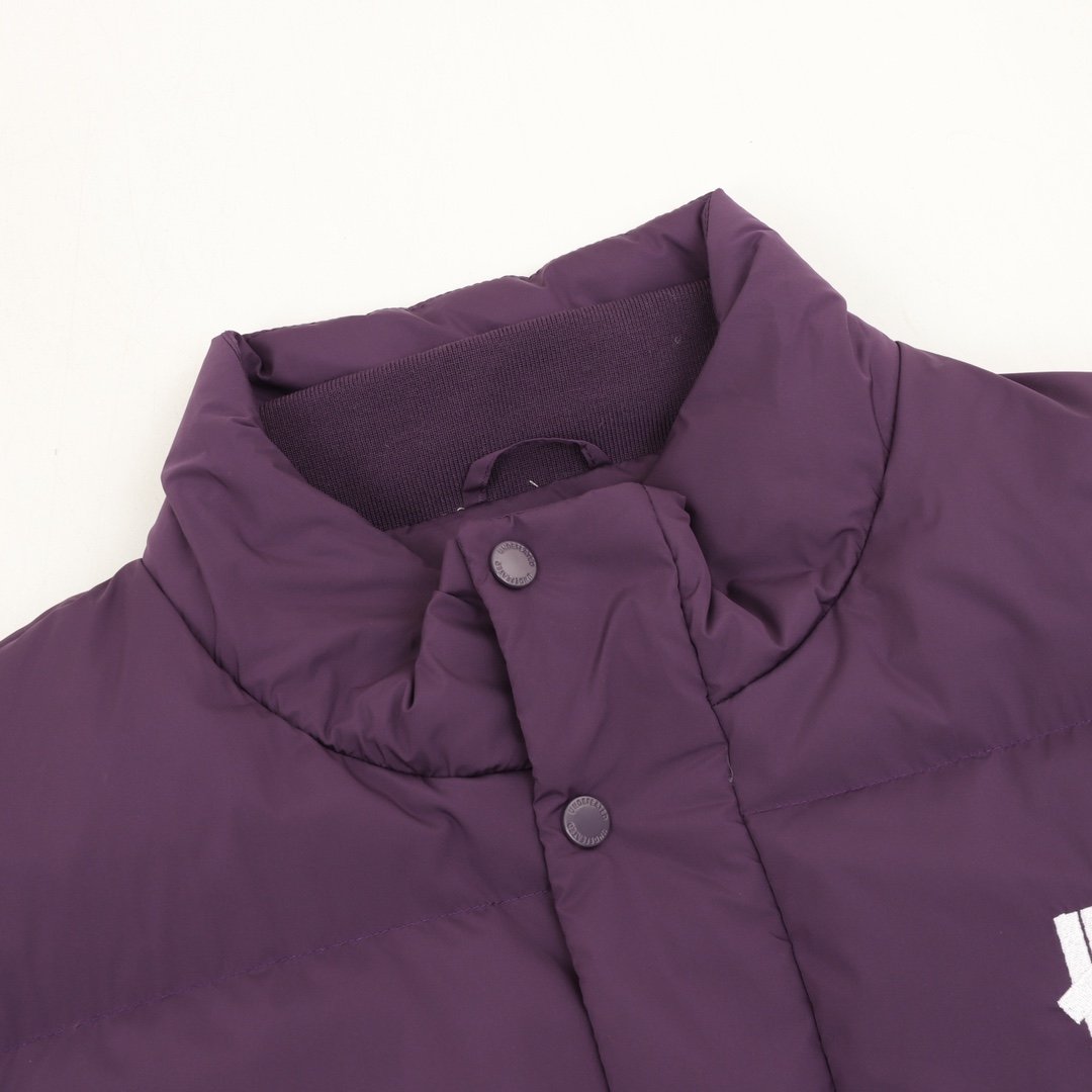 This down jacket blends classic brand design elements with a practical design philosophy. The five-stripe embroidery on the left chest embodies the spirit of sports, while the bold slogan print on the back injects an undeniable street attitude into the understated color scheme. The stand-up collar and double-layered windproof cuffs effectively block cold winds, ensuring warmth doesn’t leak out. Whether strolling through the city or waiting outdoors, it provides thoughtful protection. The unisex loose fit not only conforms to current trends but also provides ample room for layering thicker clothing, increasing the overall sense of layering and versatility. The three-dimensional oversized cut breaks away from the traditional bulky impression of down jackets. Whether for everyday winter outings or outdoor activities, this down jacket allows you to stay warm while showcasing exceptional fashion sense.