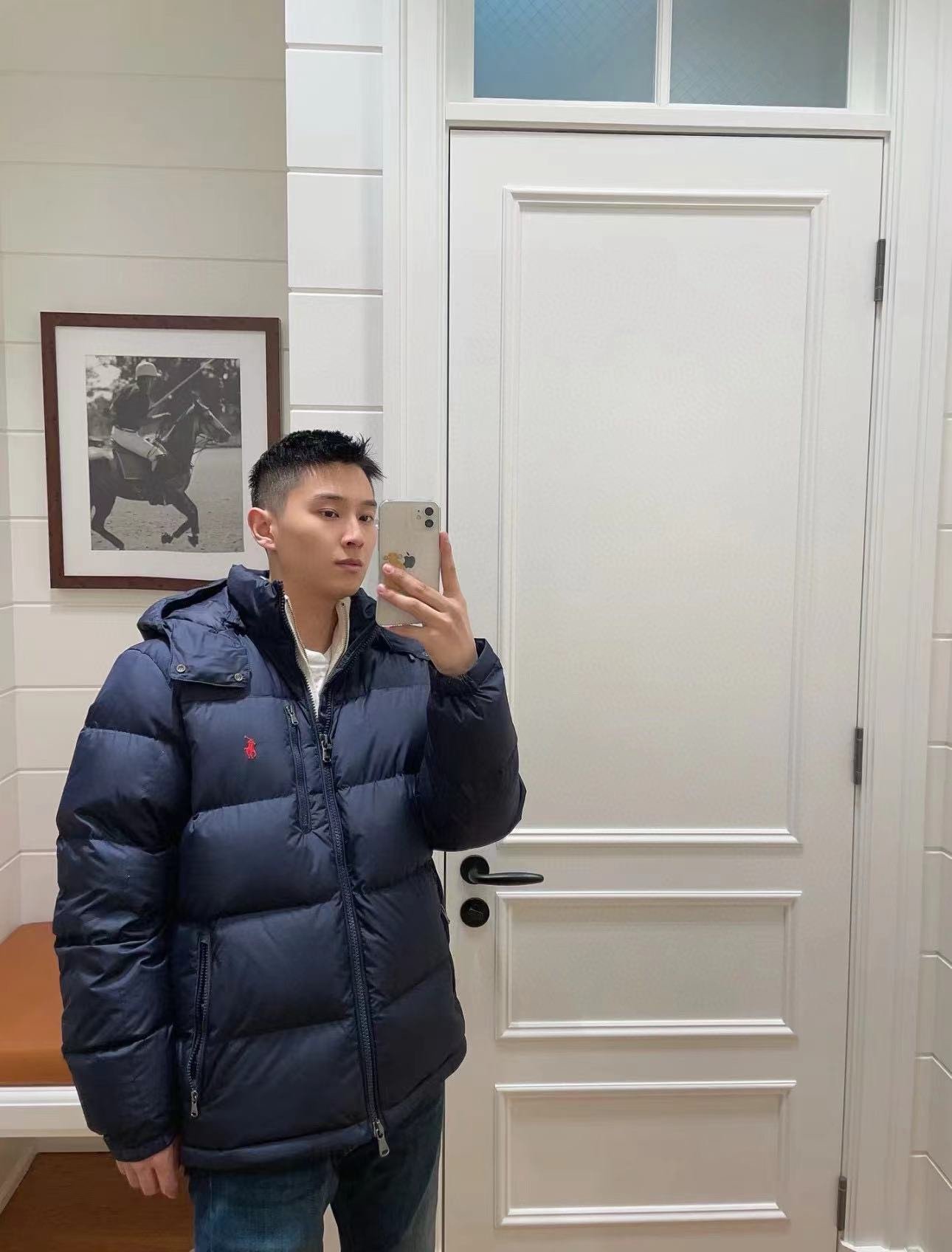 Ralph Lauren Zip-Up Hooded Embroidered Long-Sleeve Down Jacket – On-body Look #