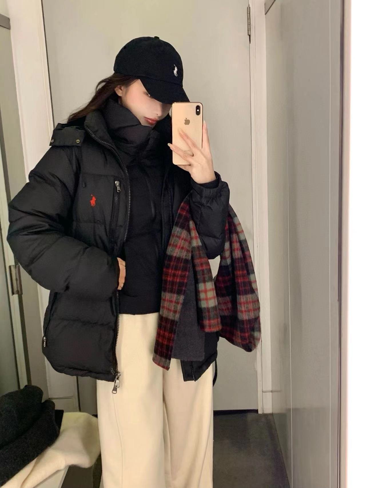 Ralph Lauren Zip-Up Hooded Embroidered Long-Sleeve Down Jacket – On-body Look #