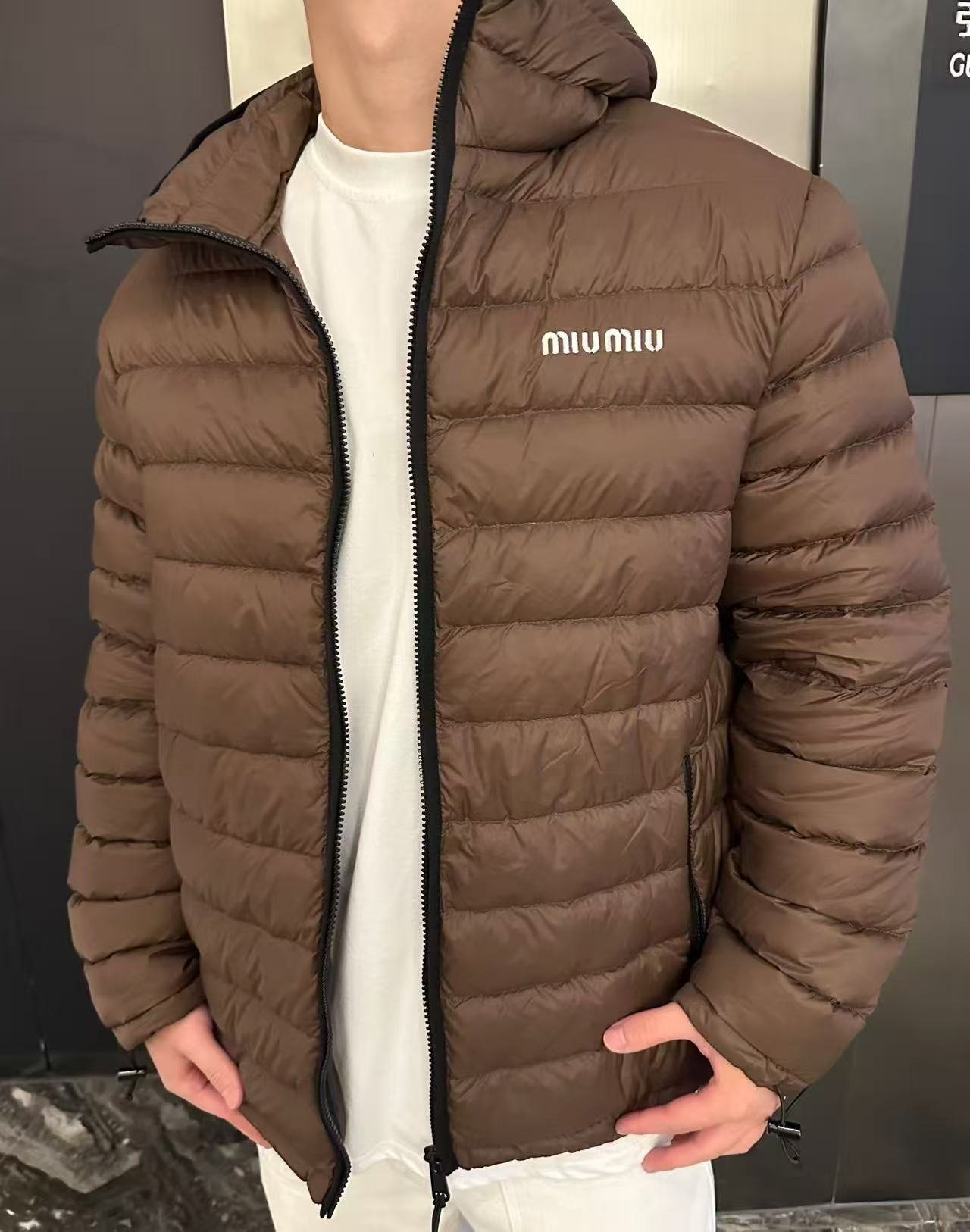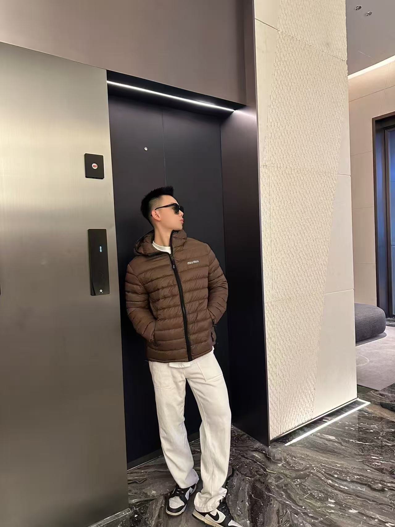 MIU MIU MM Letter Embroidered Hooded Down Jacket – Outfit Inspiration