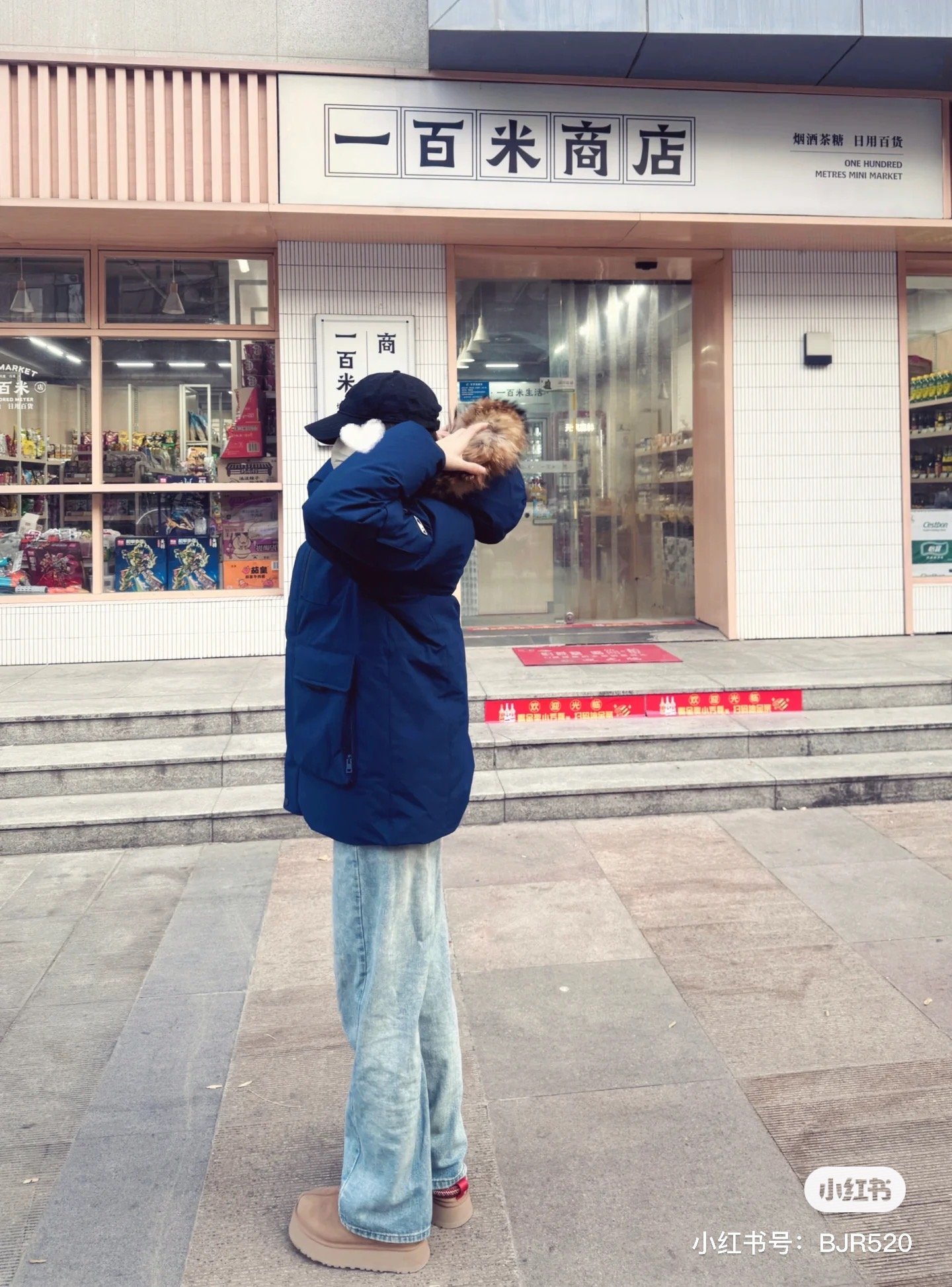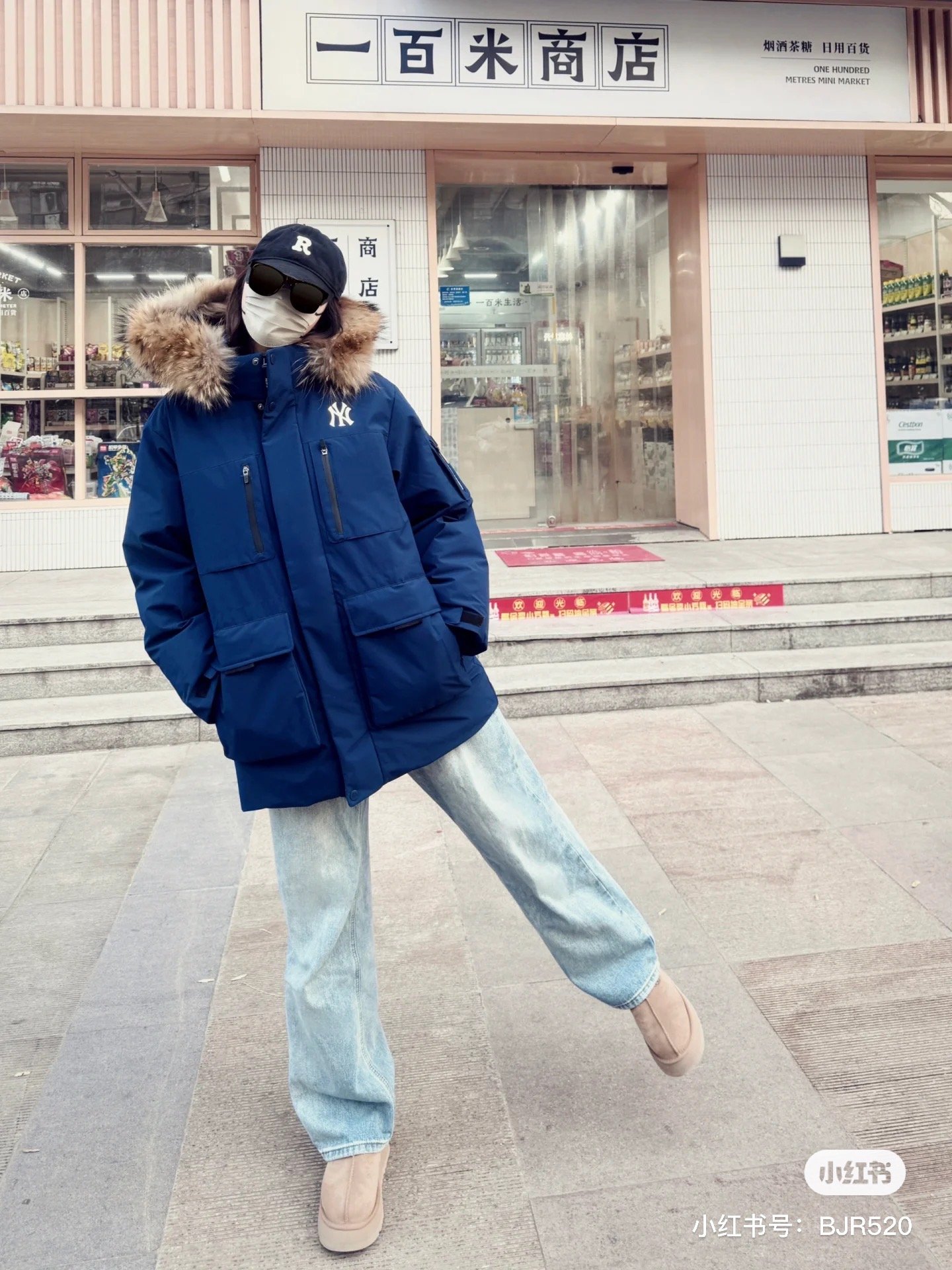 #MLB Second Generation Large Pocket Workwear-Style Fur Collar Down Jacket: On-body Look