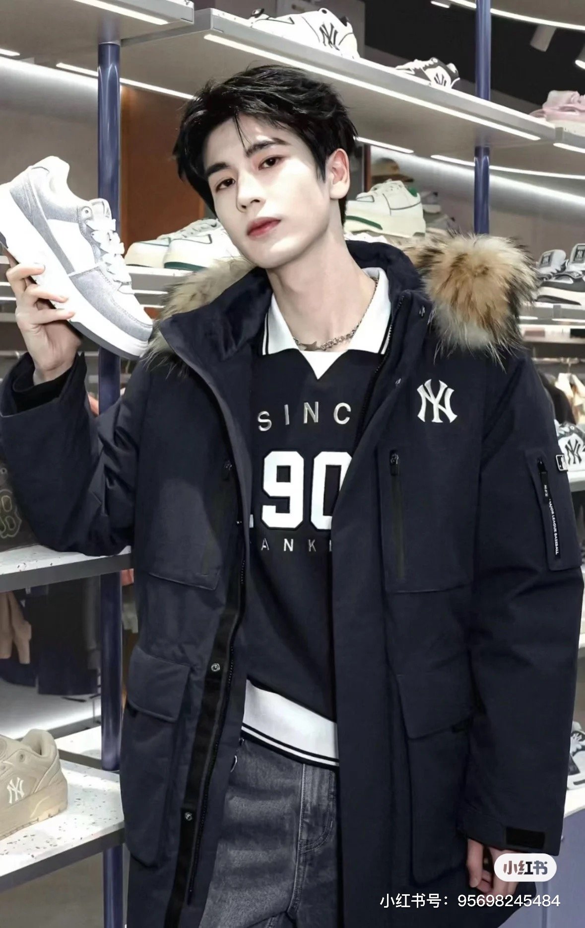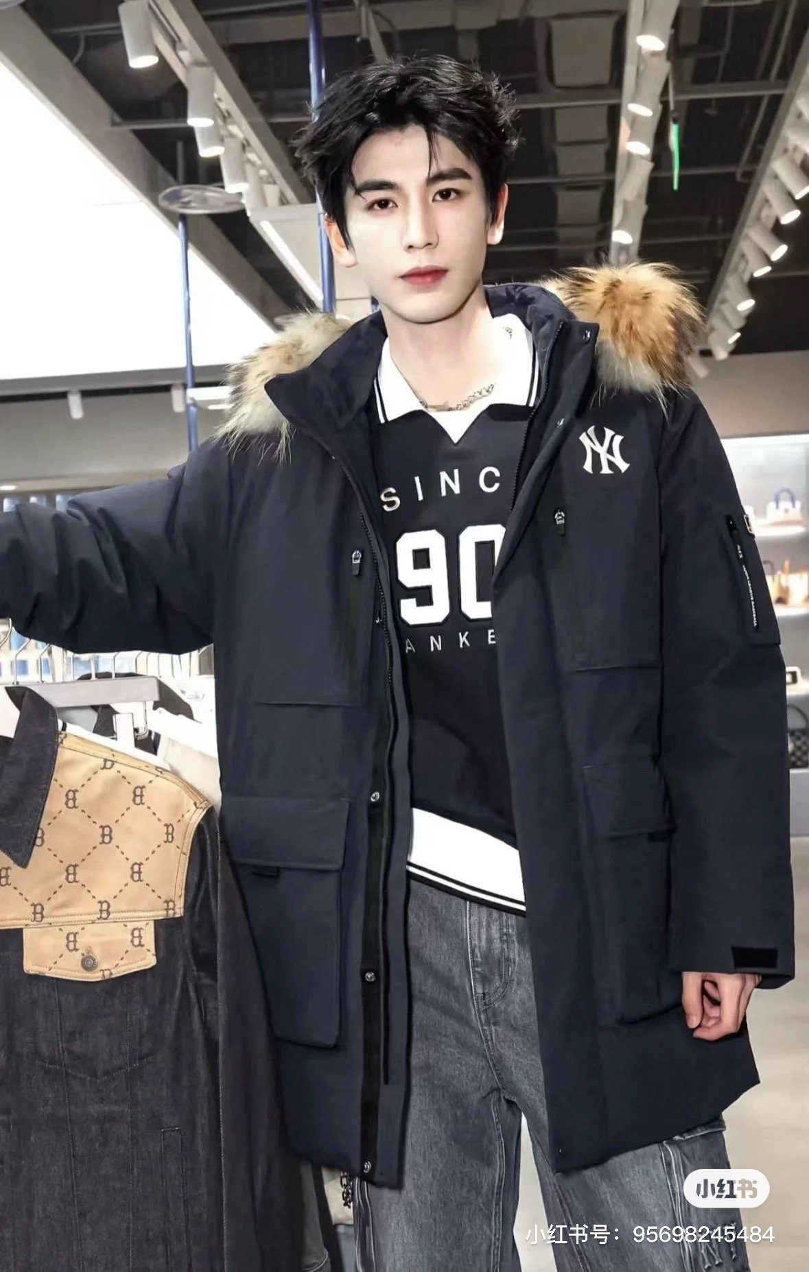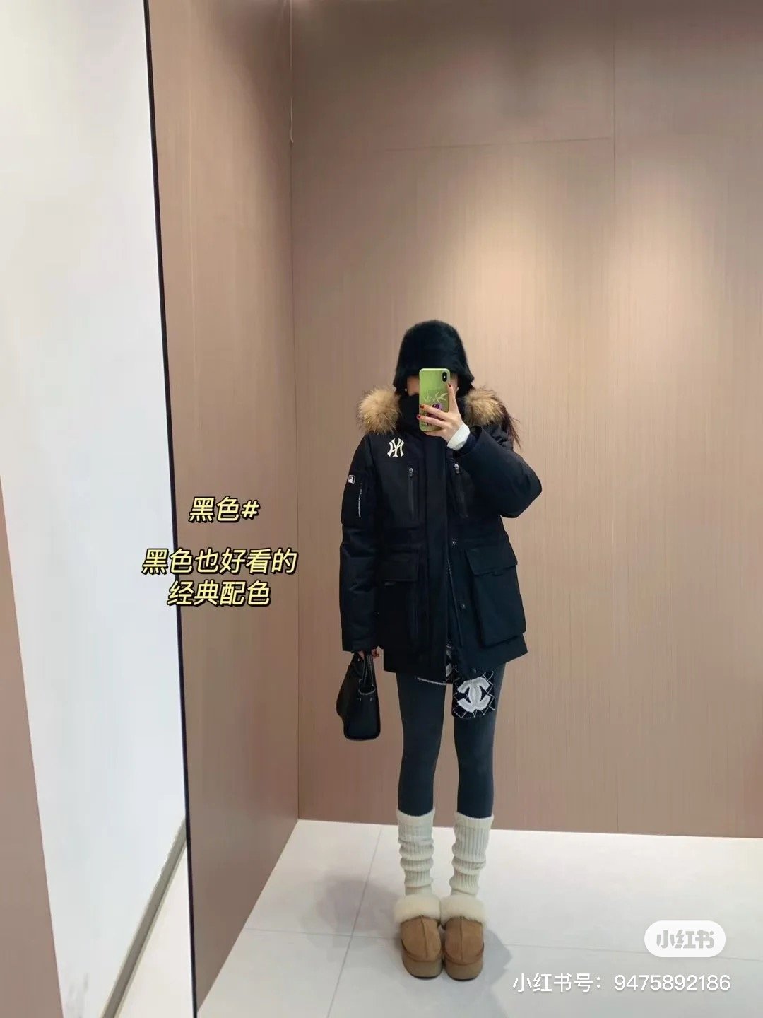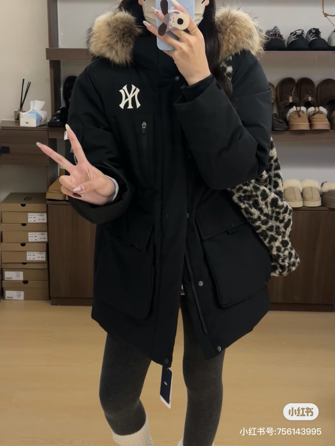 #MLB Second Generation Large Pocket Workwear-Style Fur Collar Down Jacket: On-body Look