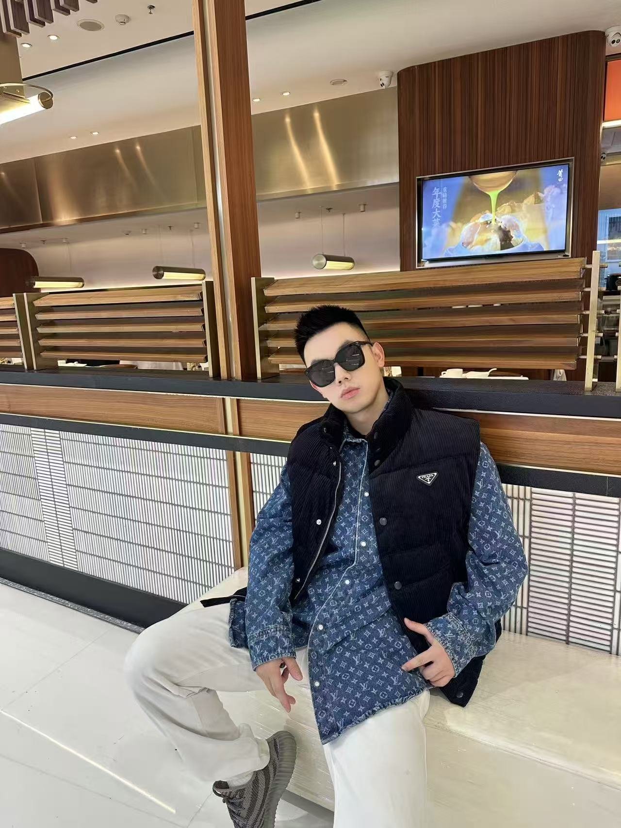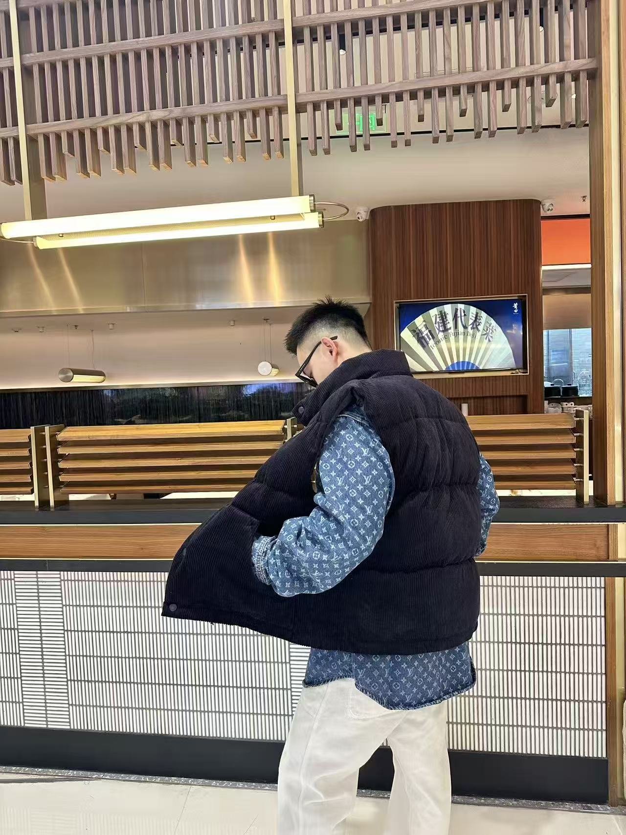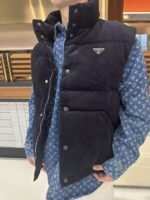 Prada PRD Triangle Logo Corduroy Down Vest Wear Reference