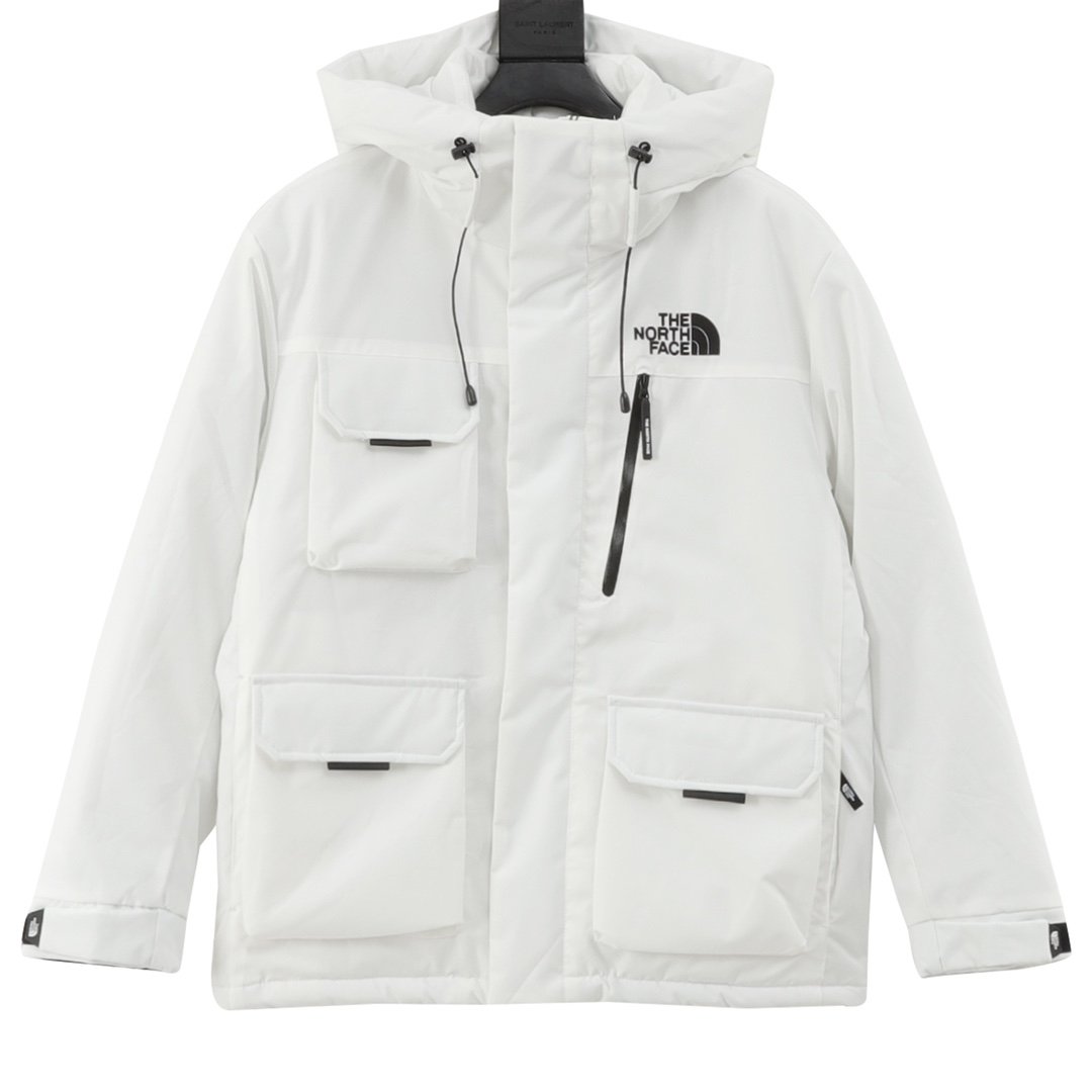 The Nroth Face TNF POLAR Waterproof and Windproof Workwear, Solid Color Logo, Multi-Pocket Drawstring Hooded Cotton Jacket, Official Winter New Arrival. An essential long down jacket for winter. Features a hood, Velcro cuffs, custom-made parachute fabric, and a design tailored to Asian body types. The inner lining is filled with high-tech down cotton, providing windproof, cold-proof, and warm protection. Stylish without being bulky. Exquisite embroidered logo on the front and back, meticulous attention to detail. The classic Nroth Face logo is undeniably stylish. The simple yet elegant design makes it a versatile choice for couples. Highly recommended for its trendy appeal.