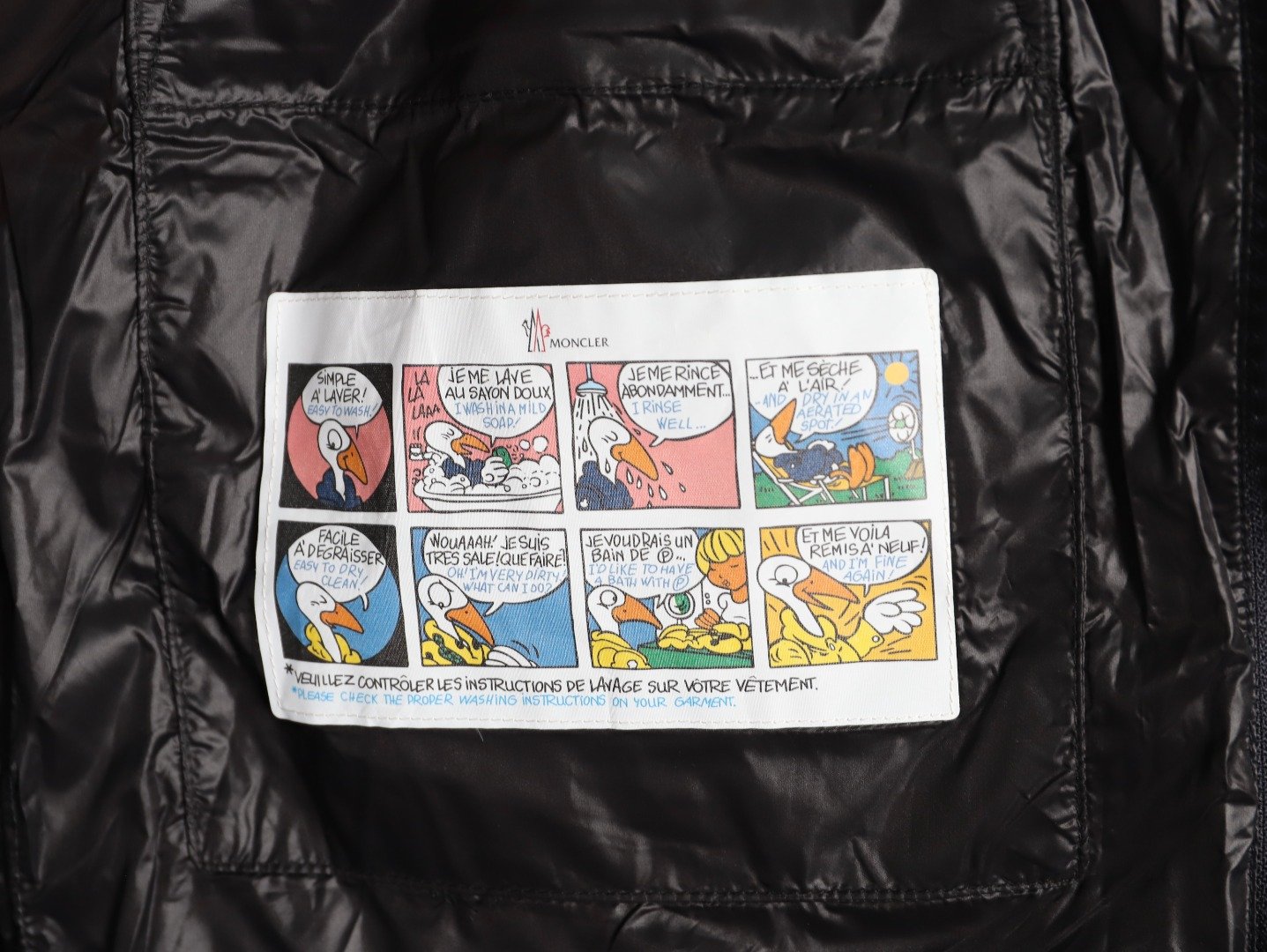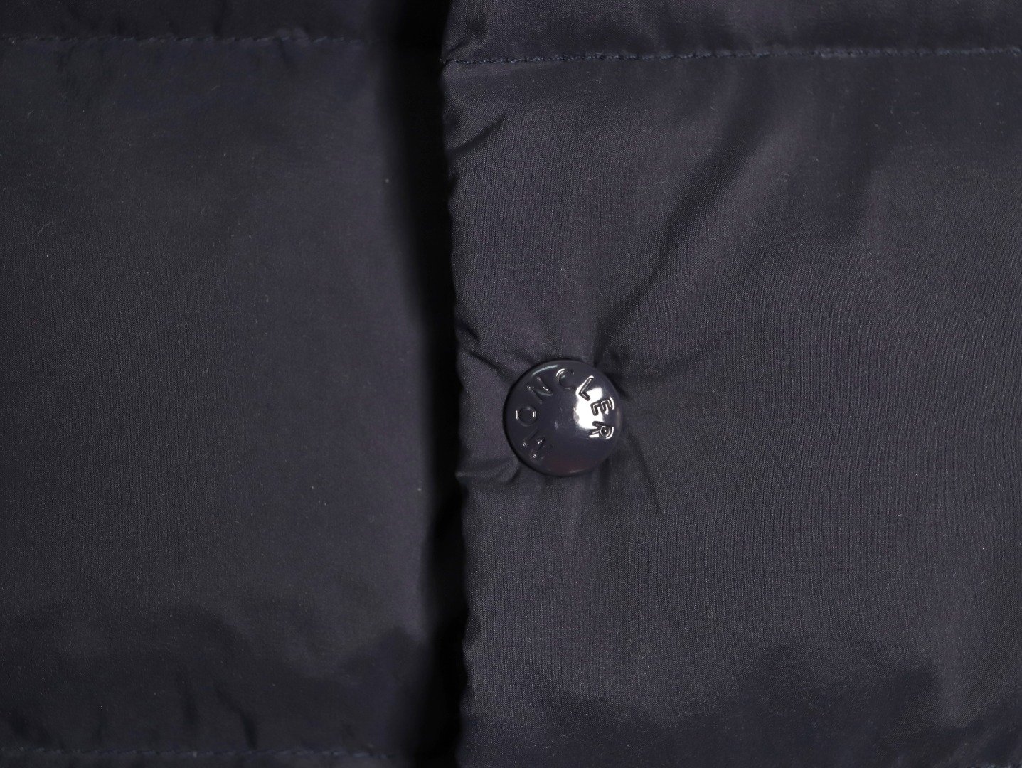 This short down parka is made from longue Saion fabric, packed with functional details to ensure warmth and comfort. The entire garment features meticulous craftsmanship and intricate stitching, including zippered pockets, adjustable cuffs, and a snap-button zipper flap placket. The sleeves are adorned with the brand logo. This adds a unique touch to the overall look while significantly enhancing protection. Unisex