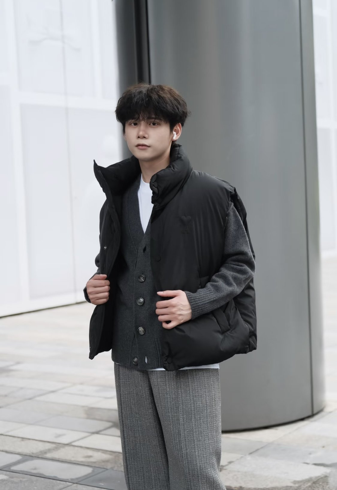 #Ami 25Fw Embossed Heart Down Vest – How it looks on!