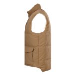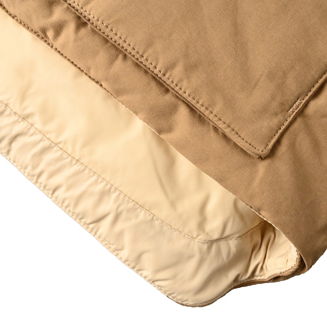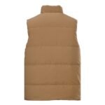 The fabric is a blend of 55% cotton and 45% recycled nylon, combining natural texture with an eco-friendly concept. The delicate, skin-friendly lining is suitable for extended wear. It’s filled with 90% new national standard white duck down, providing warmth without bulk. Two flap pockets combine practicality and style, while the dual closure of zipper and snap buttons offers greater freedom of movement. The elastic drawstring hem cleverly cinches the waist, creating a sleek silhouette. Whether paired with a shirt for a business casual look or combined with a sweatshirt for a street style vibe, it’s versatile. The lined interior is soft and comfortable against the skin, and the metallic logo adds a touch of starlight. From city commutes to weekend hikes, it embodies functionalism and is a statement of style.
