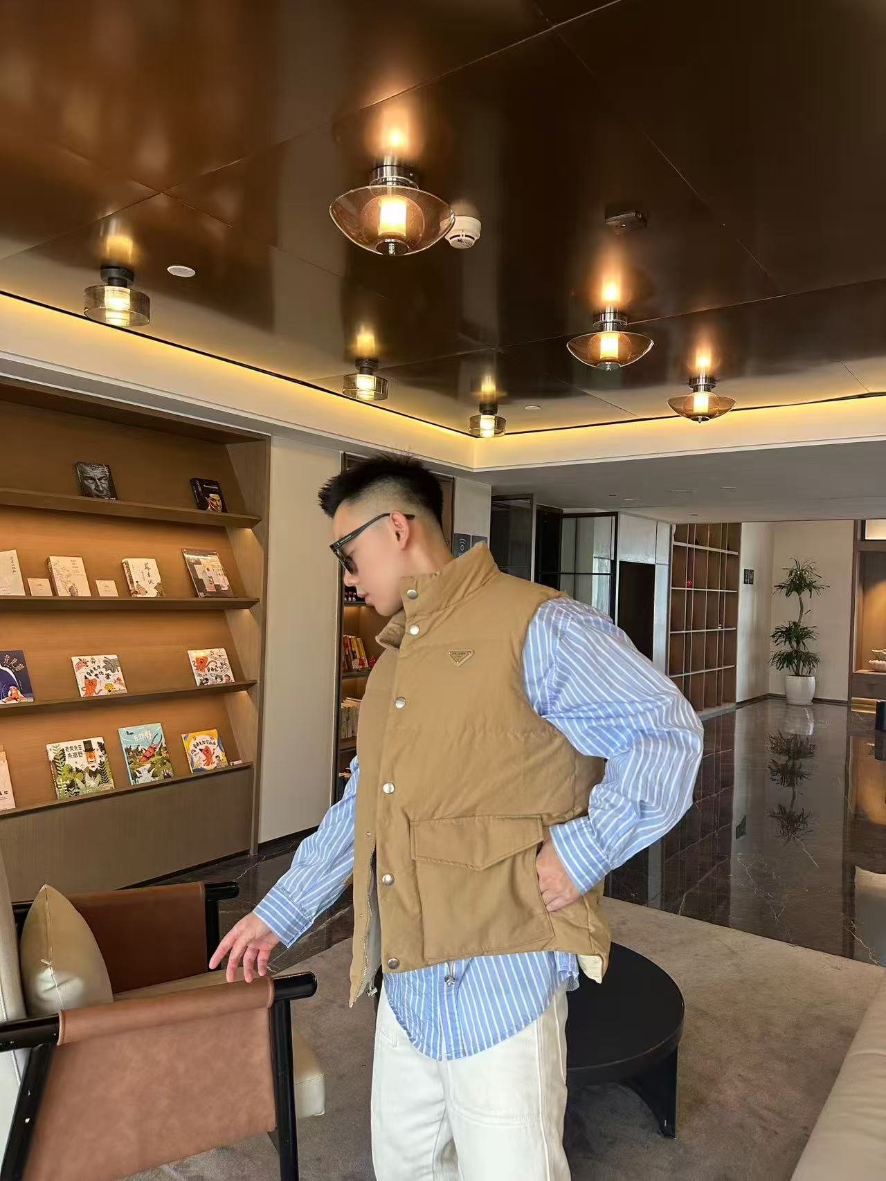 PRADA Triangle Logo Double Pocket Down Vest – Wearing Inspiration
