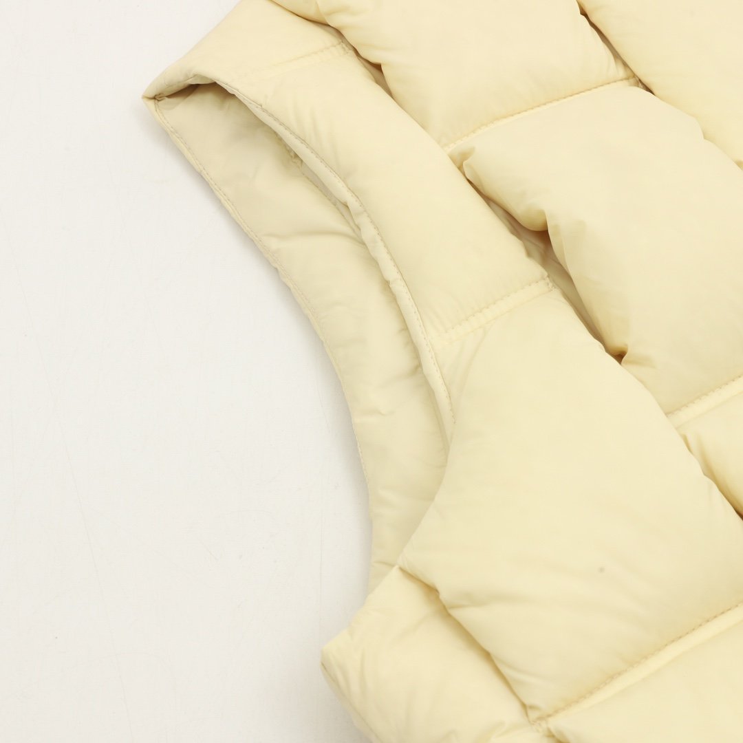 This 3D quilted down vest is made of lightweight, tear-resistant fabric and is a collaboration between the brand and