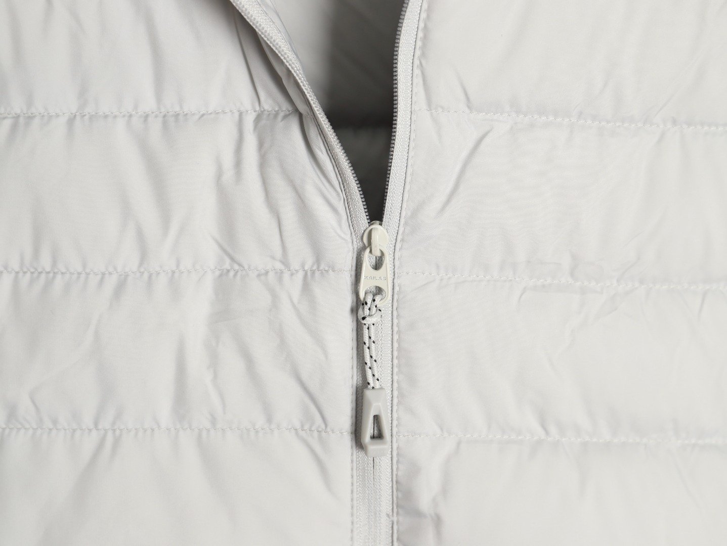 This down jacket is made of lightweight, splash-resistant, breathable fabric