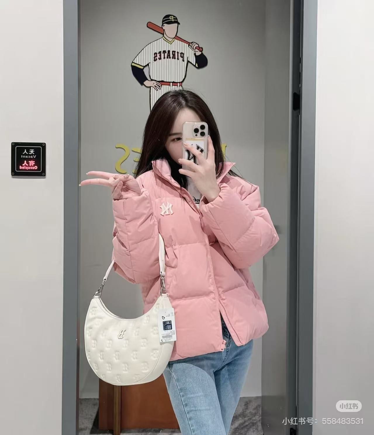 MLB New York Yankees Basic Series FW25 Solid Color Comfortable Warm Lightweight Casual Versatile Stand Collar Fleece Zipper Short Duck Down Jacket