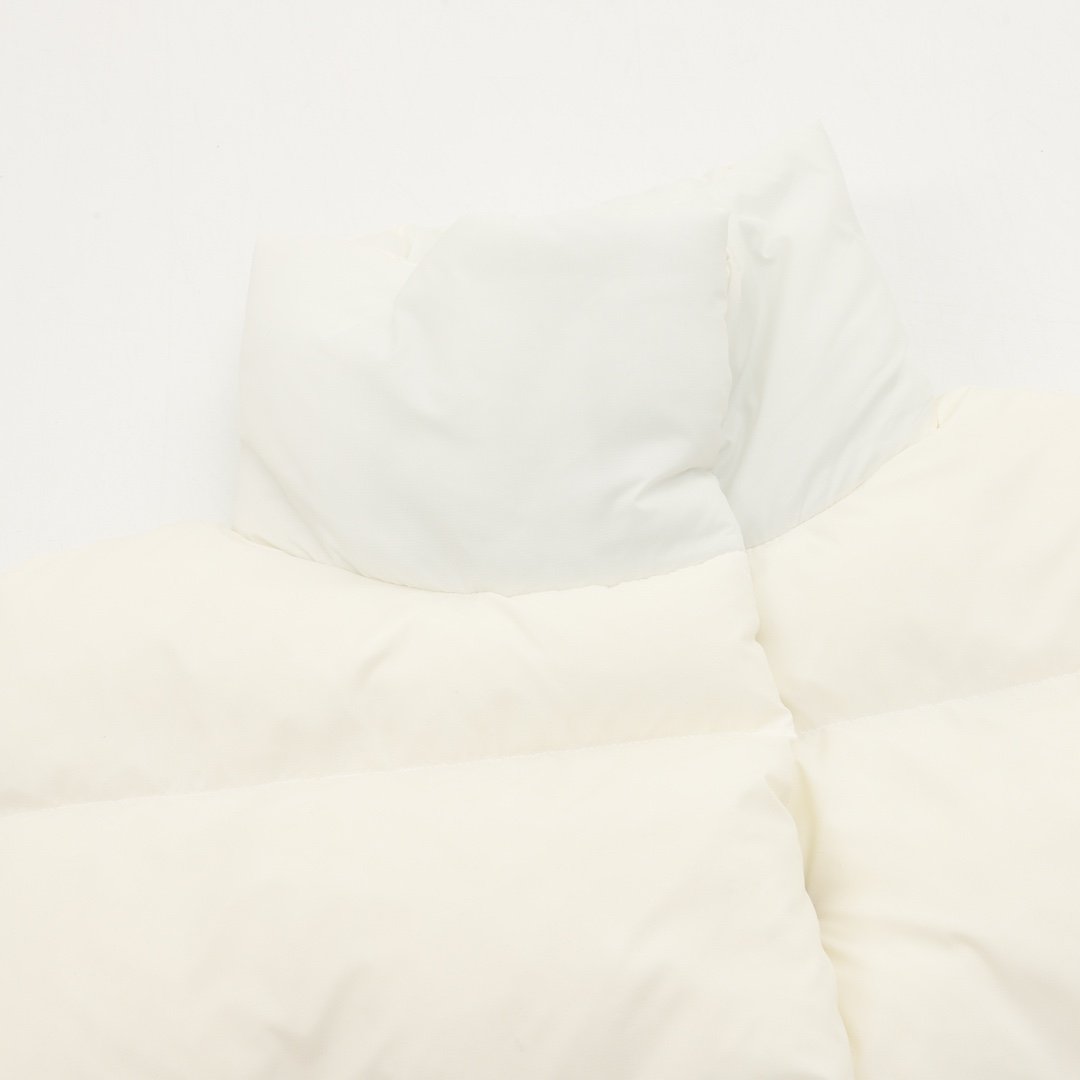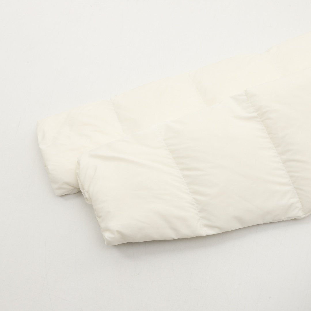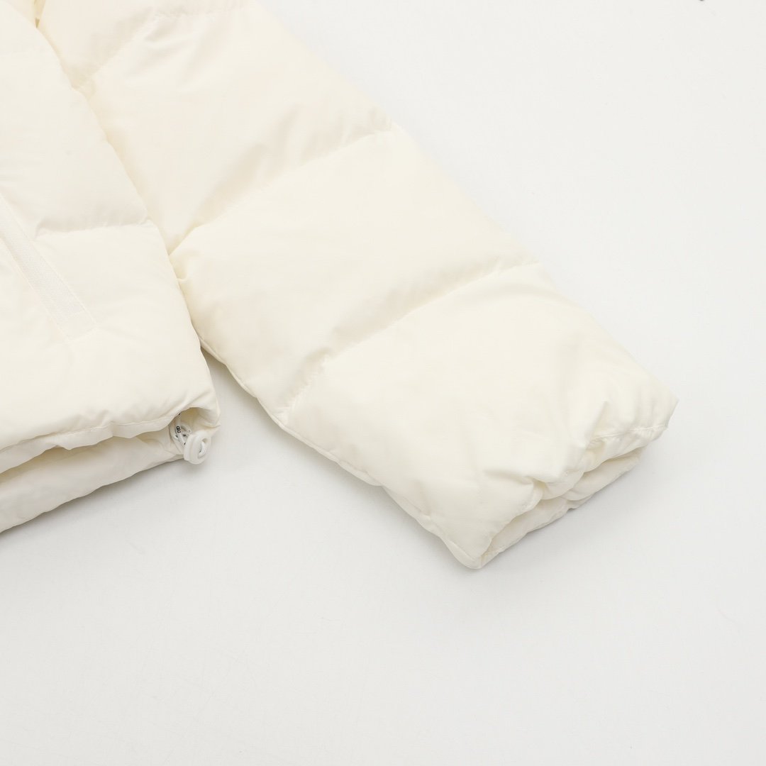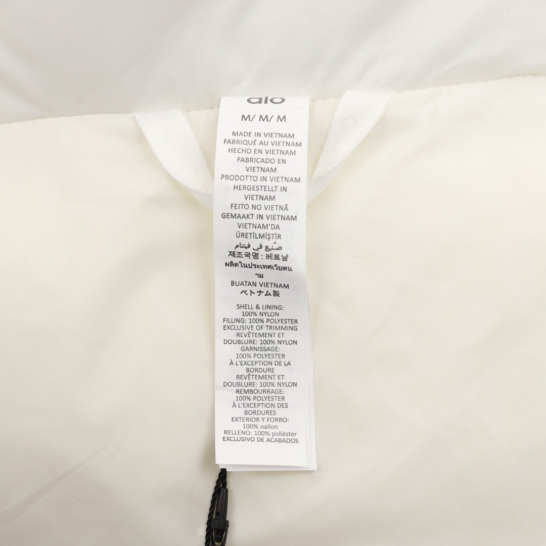 ALO yoga short down jacket with gold label and stand-up collar