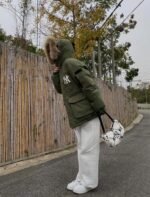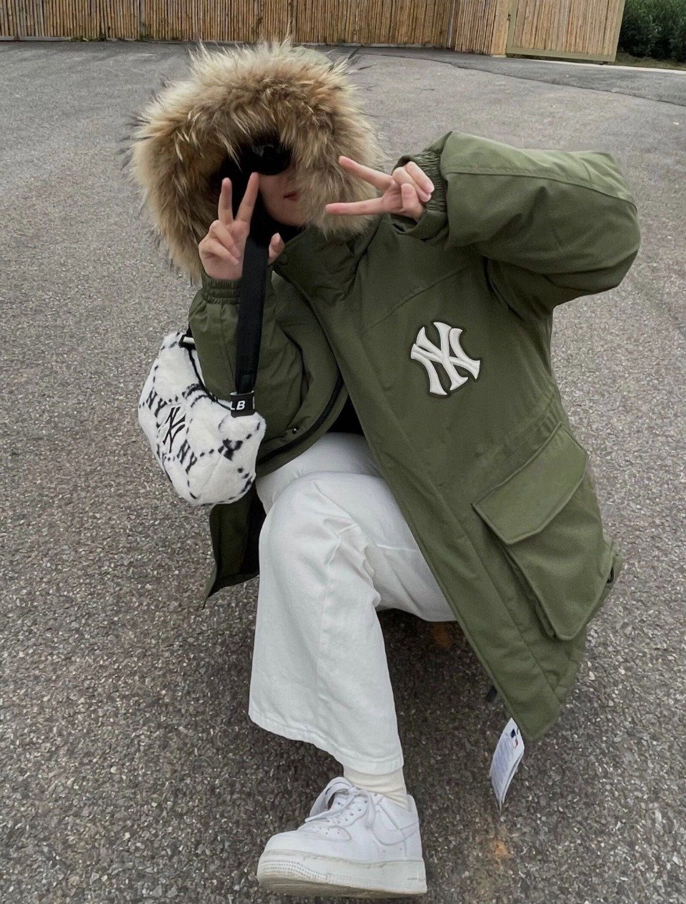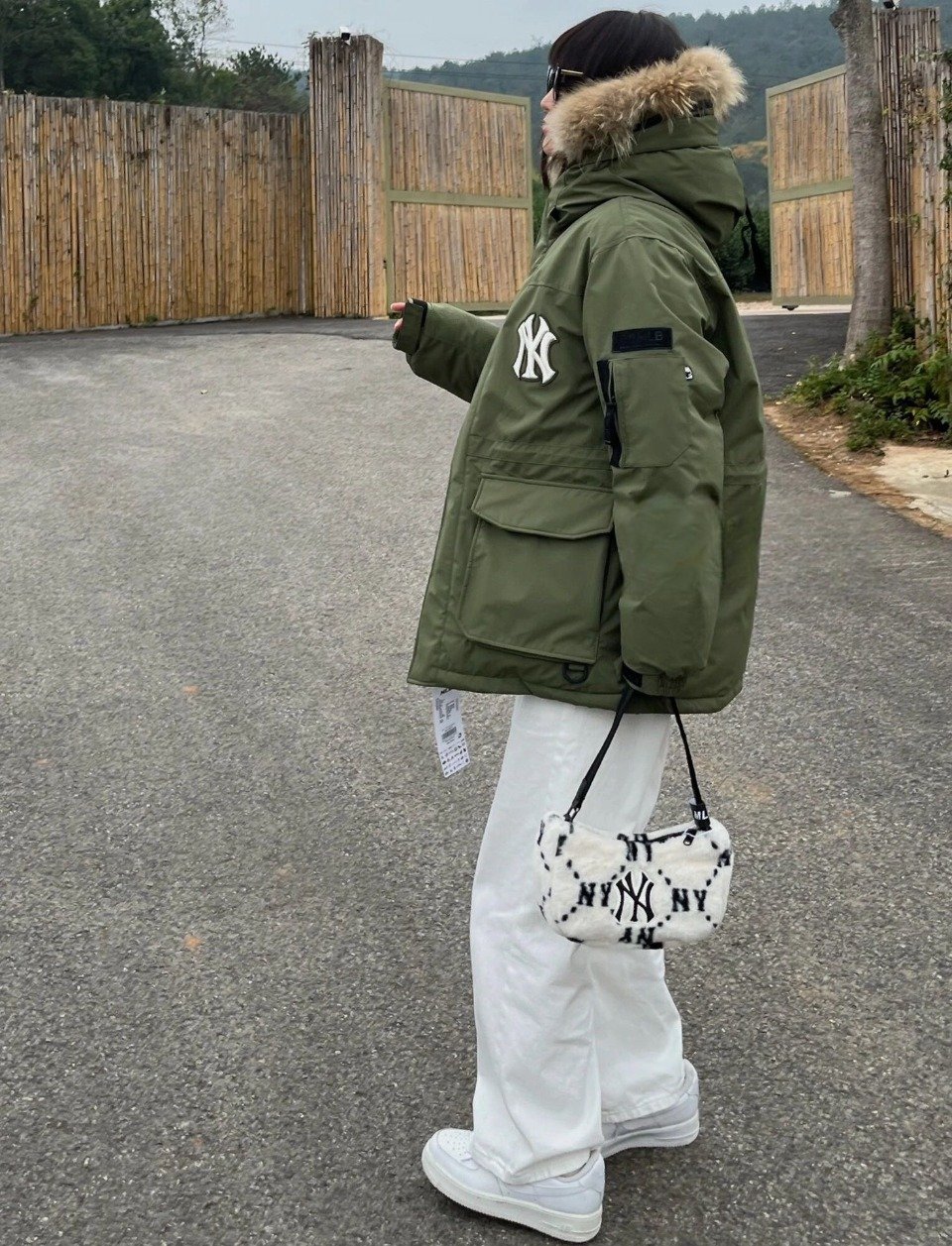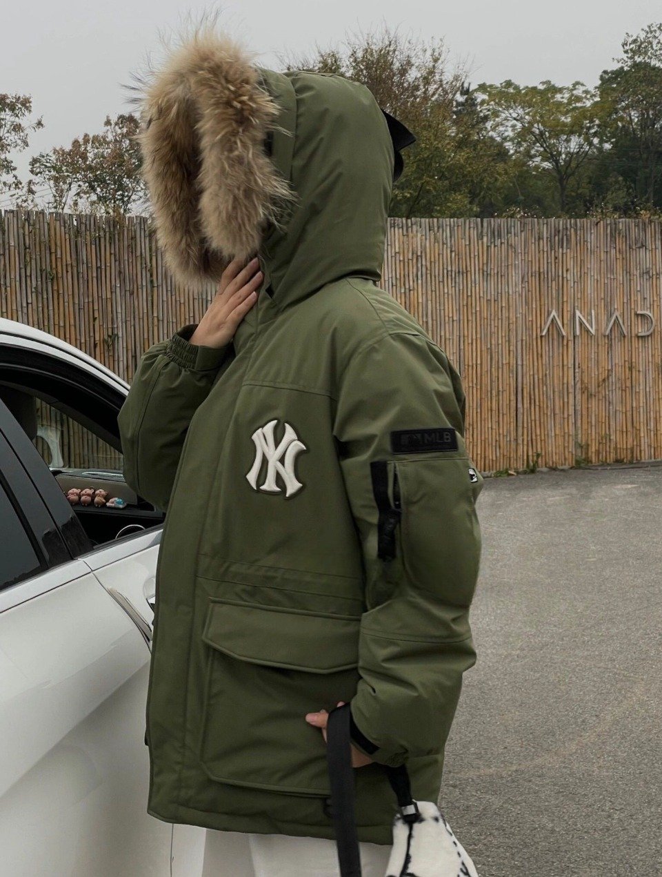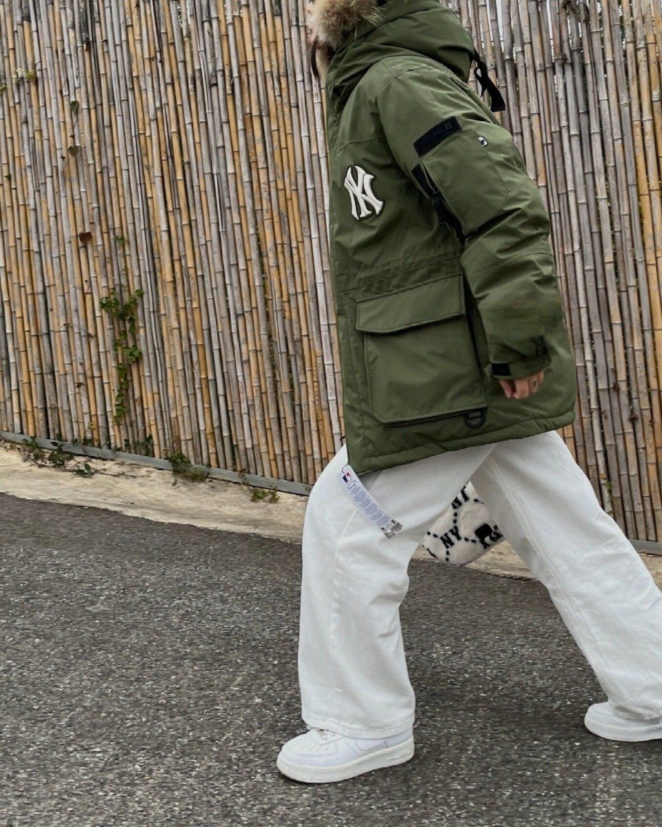 Mlb 23Fw NY Appliqué Embroidered Fur Collar Down Jacket – Green