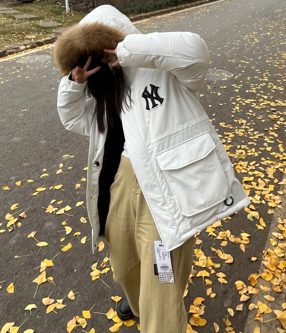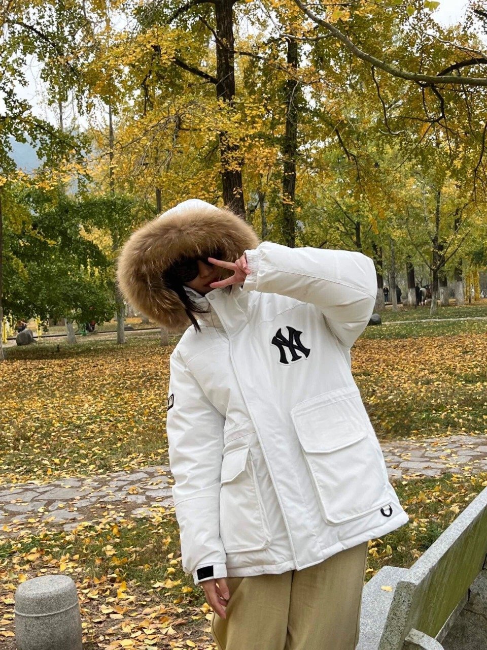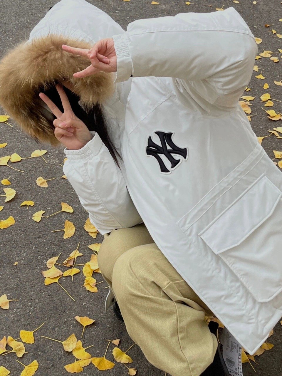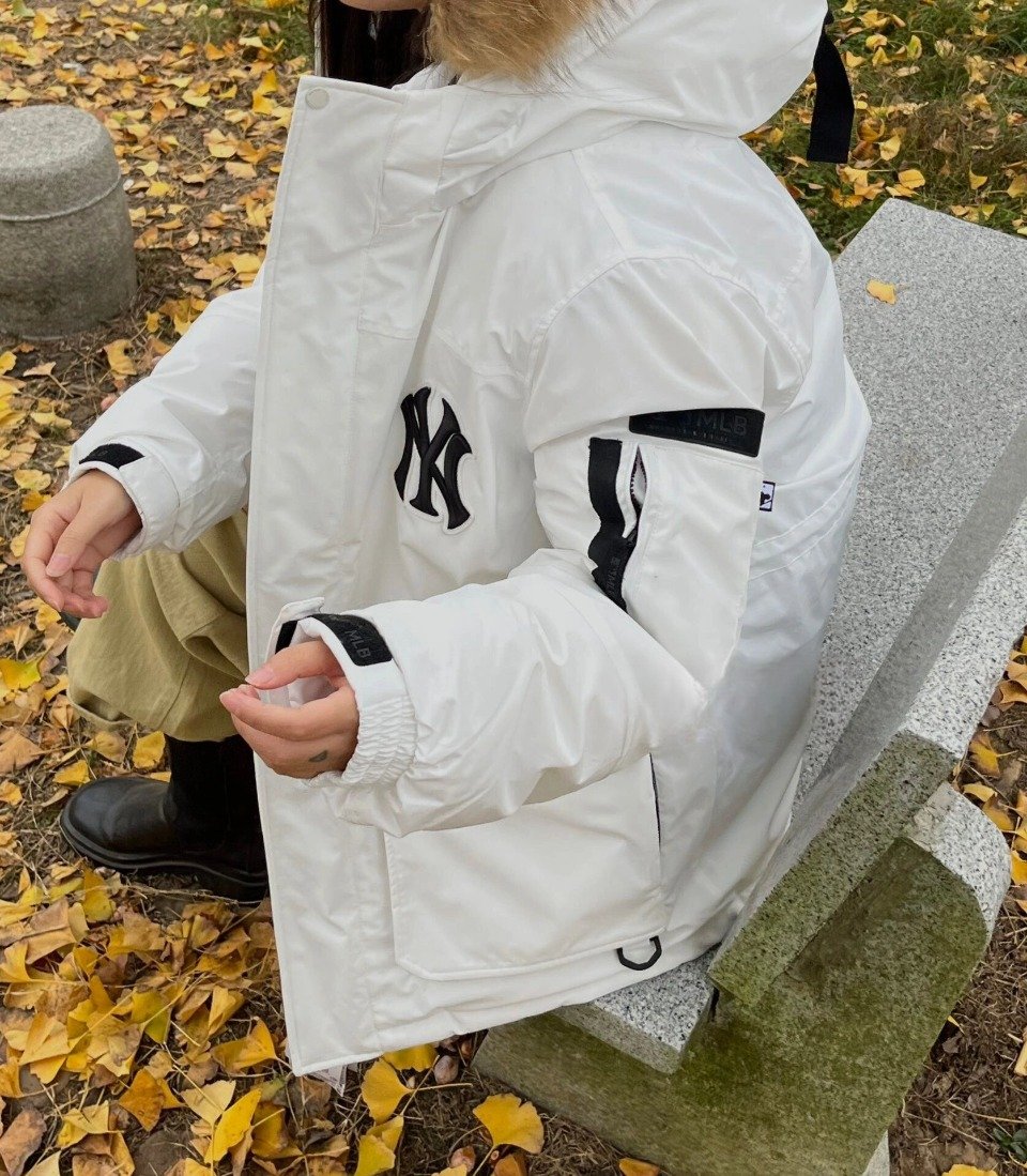 Mlb 23Fw NY Appliqué Embroidered Fur Collar Down Jacket – White