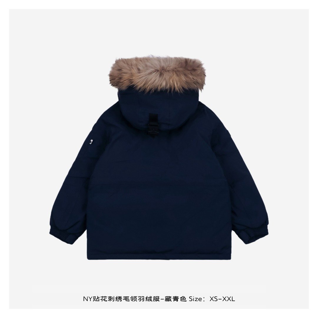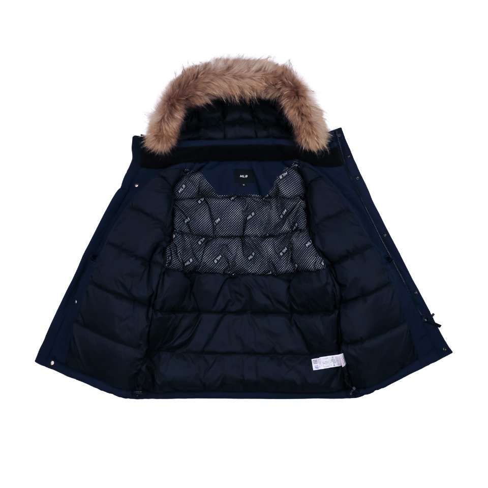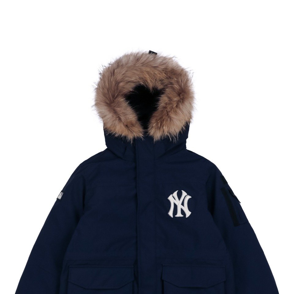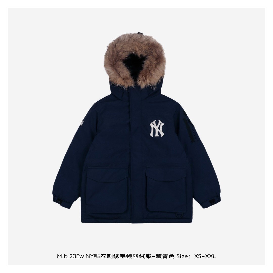 Mlb 23Fw NY Appliqué Embroidered Fur Collar Down Jacket – Navy Blue