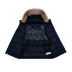 A classic multi-functional workwear style with multiple pockets. The genuine fur collar is made of raccoon fur, providing excellent wind protection for outdoor wear. This down jacket features a double-layer down-proof lining for superior windproof performance, ensuring exceptional warmth in winter. Filled with white duck down, it boasts high loft, making it suitable even in sub-zero temperatures. The stand-up collar and hood design allow you to pull the collar up high while outdoors, keeping your hands warm in your pockets. It also features windproof cuffs and a down-proof trim at the collar for added protection. The neck doesn’t feel cold, and it’s incredibly warm when worn. It’s filled with 80% duck down, a very high fill power. Every part is meticulously crafted; after filling, the seams are sealed to prevent down leakage, and then the down is continuously patted in for five minutes to ensure every corner is filled. Every compartment is fully and thickly packed. It features a custom-made original logo zipper, classic embroidery on the chest, custom-made accessory labels, and an inner care label with a QR code.