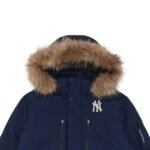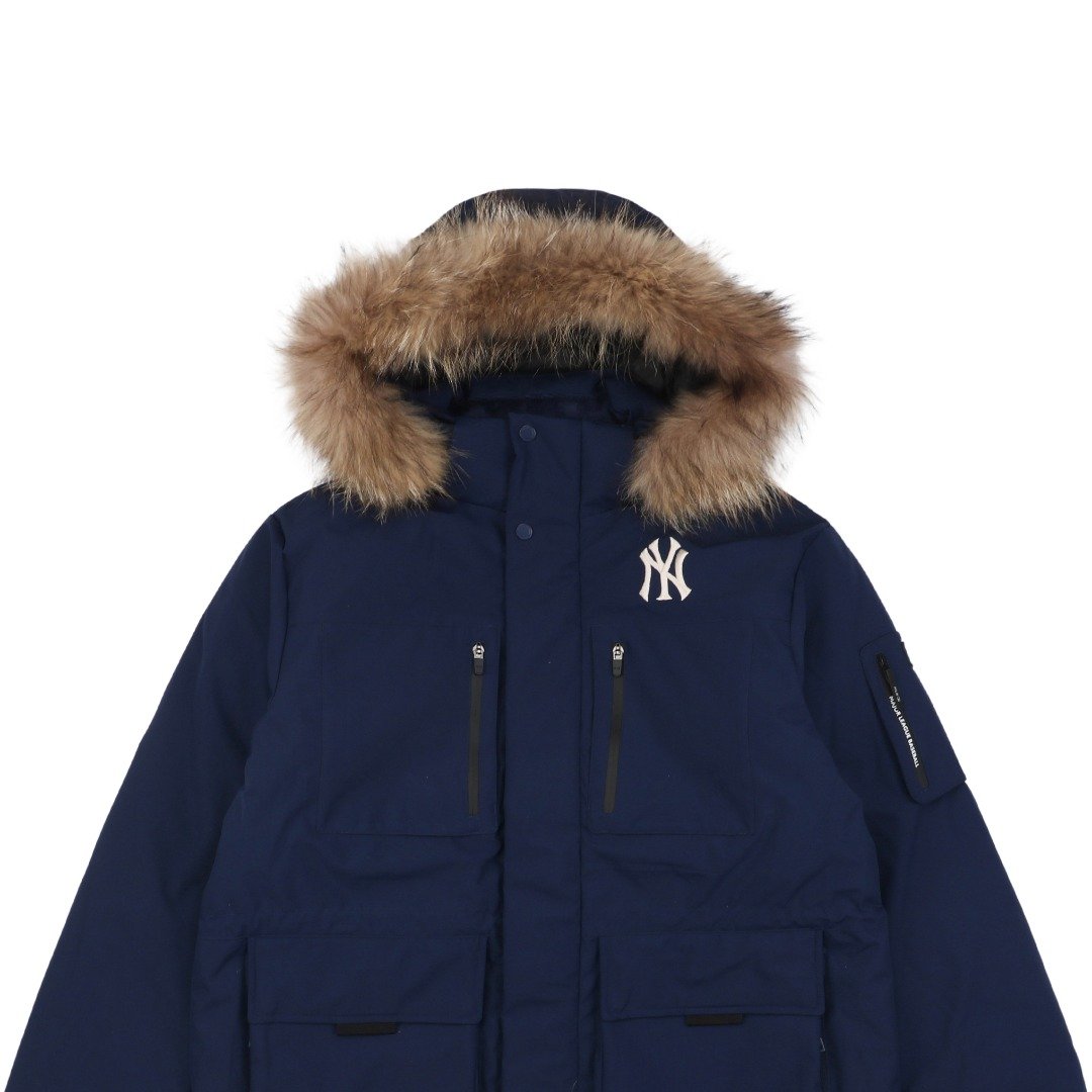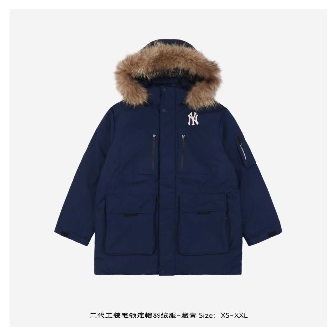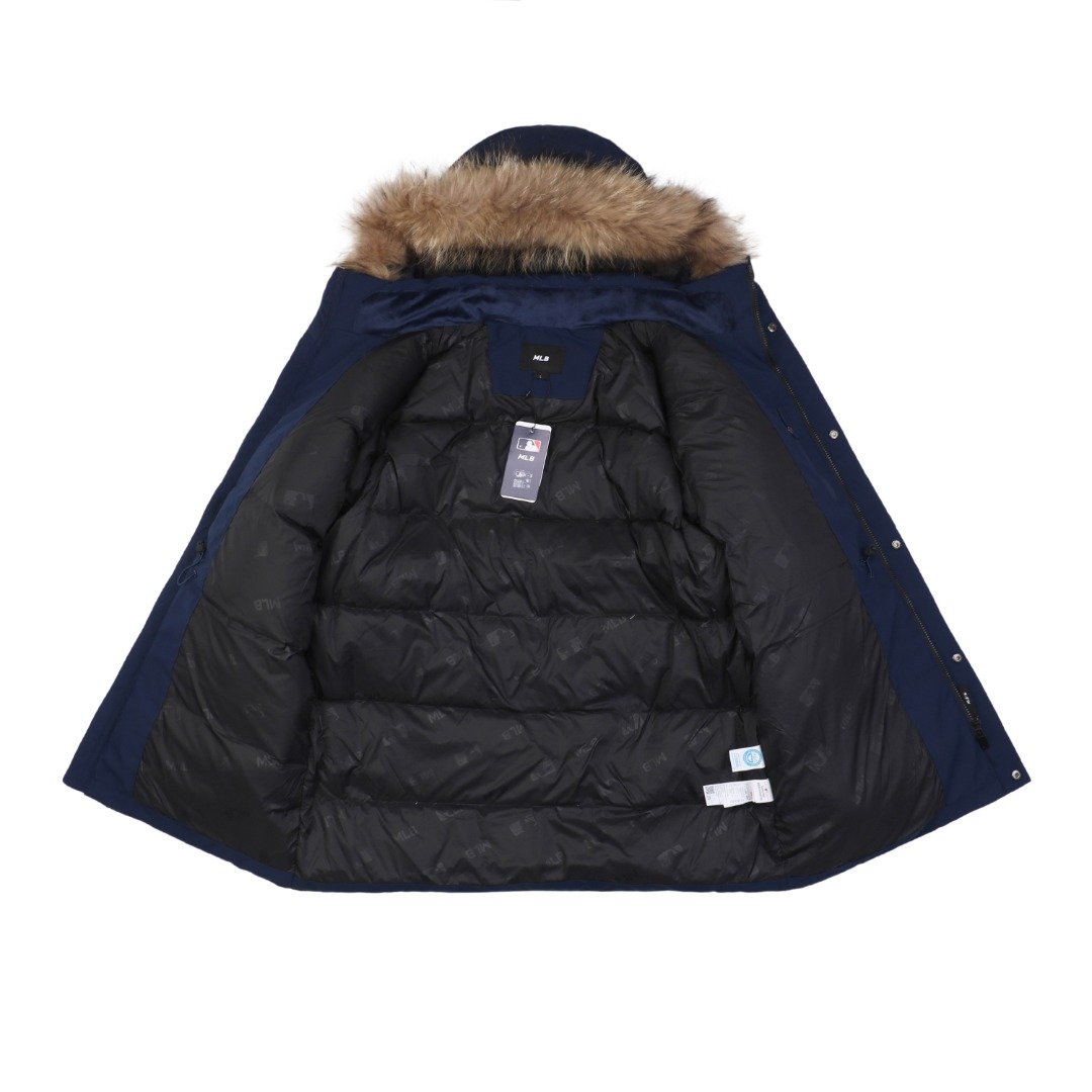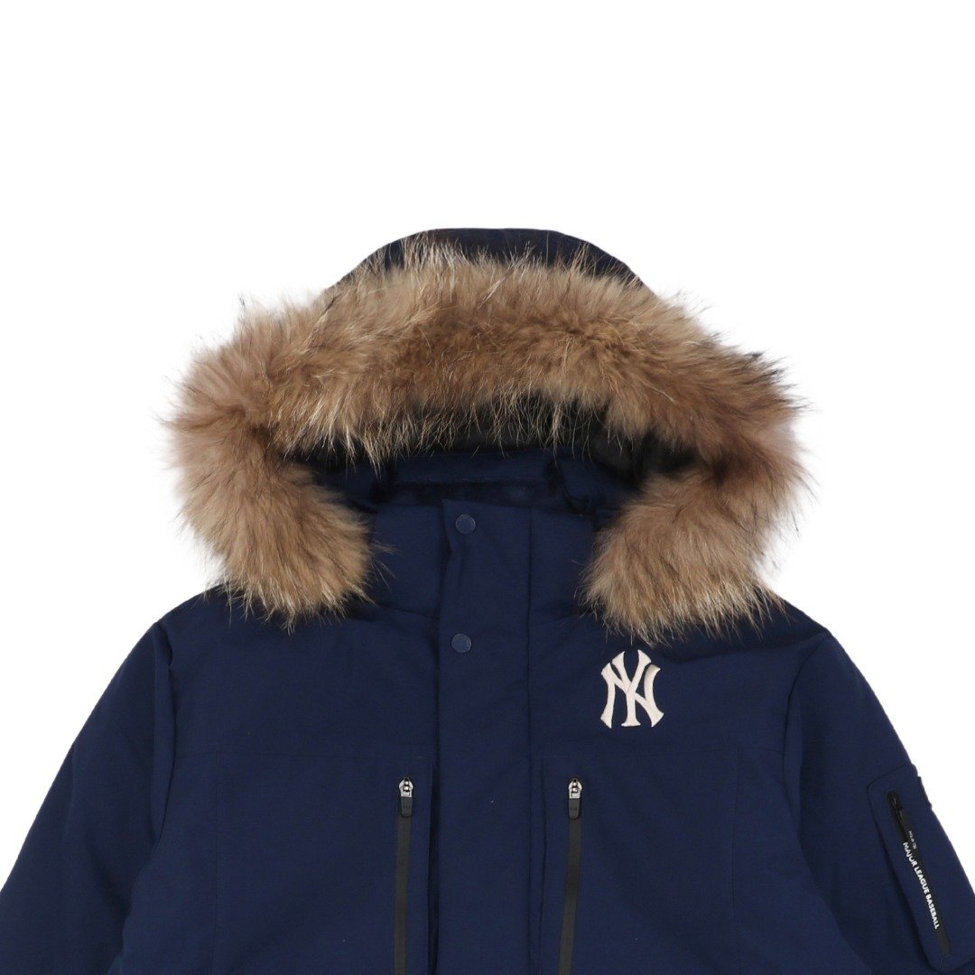 MLB 24Fw Second Generation Workwear Hooded Down Jacket with Fur Collar – Navy Blue