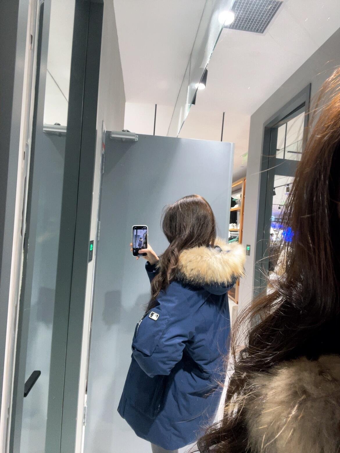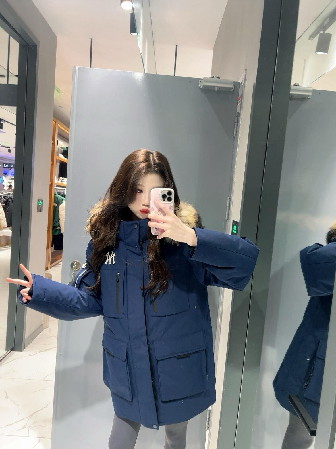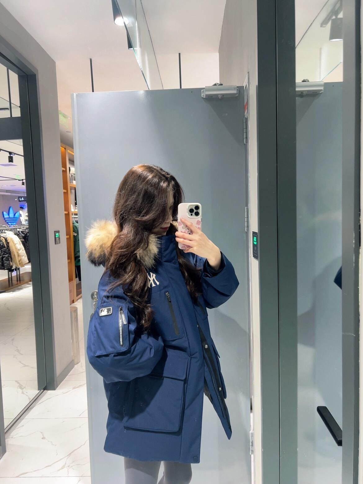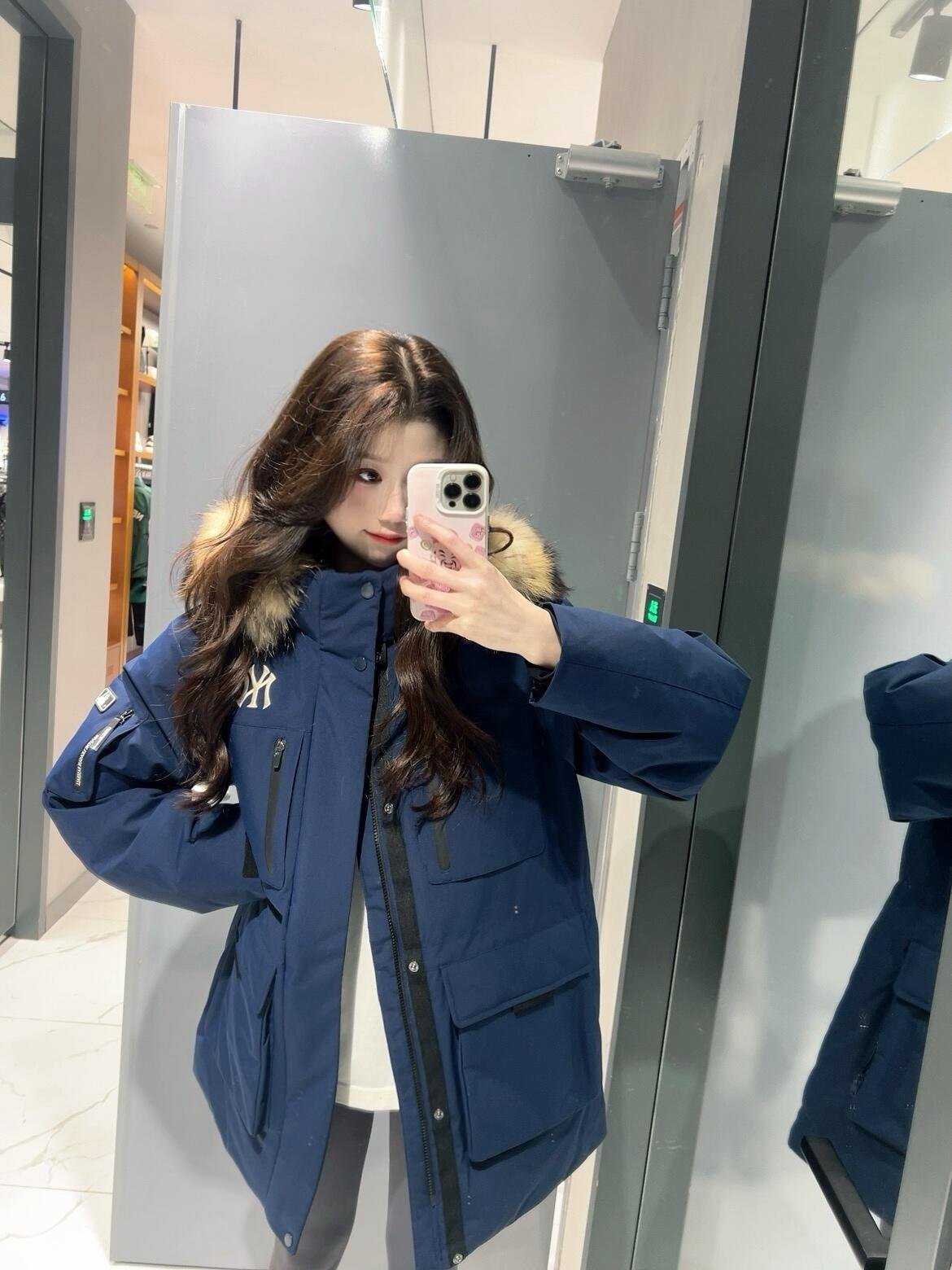 MLB 24Fw Second Generation Workwear-Style Hooded Down Jacket with Fur Collar – Navy Blue