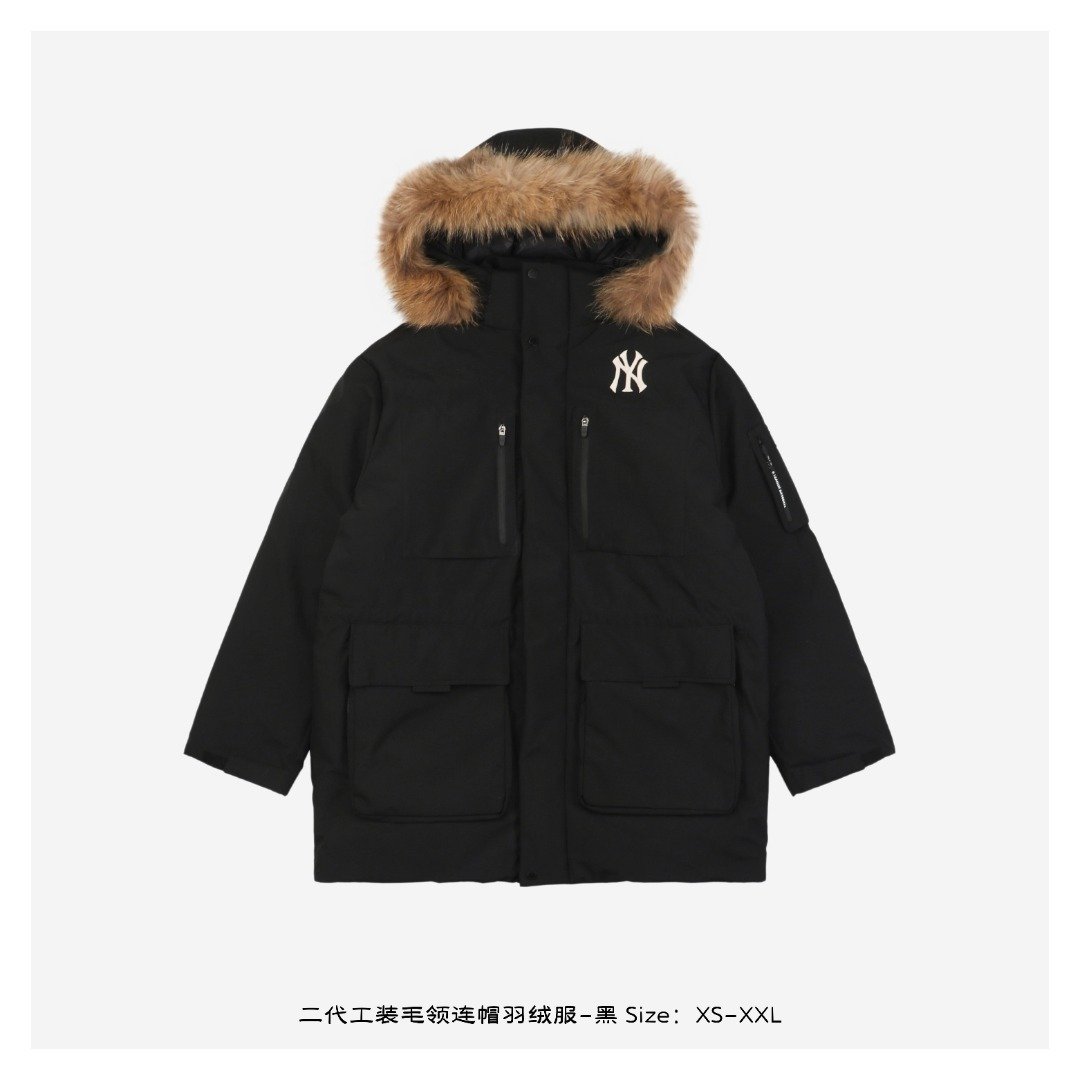 MLB 24Fw Second Generation Workwear Hooded Down Jacket with Fur Collar – Black