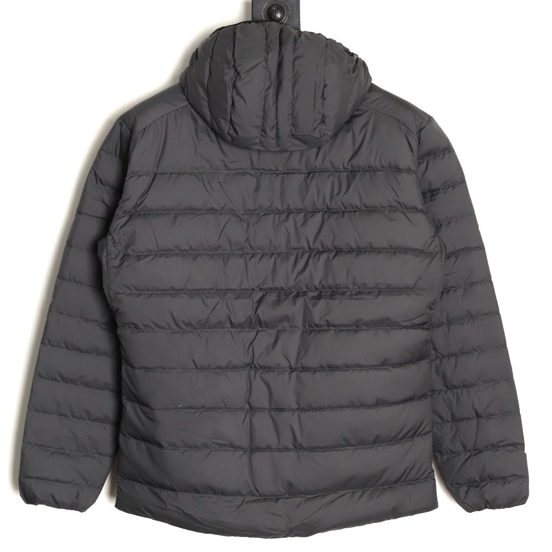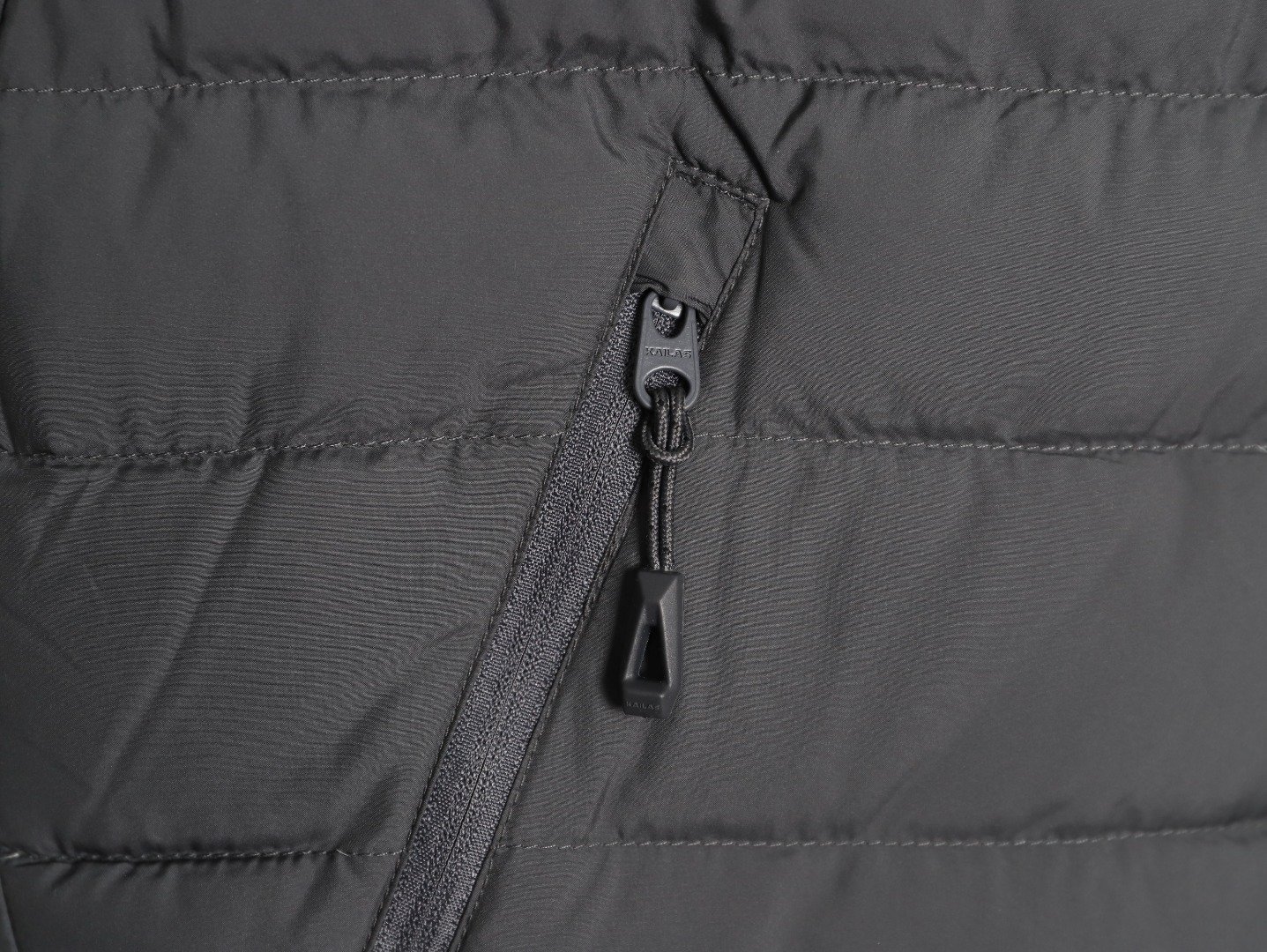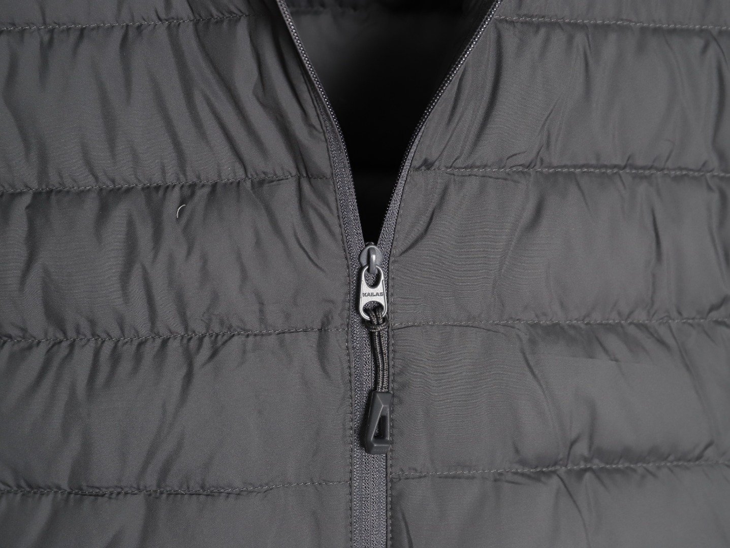 This down jacket is made of lightweight, splash-resistant, breathable fabric