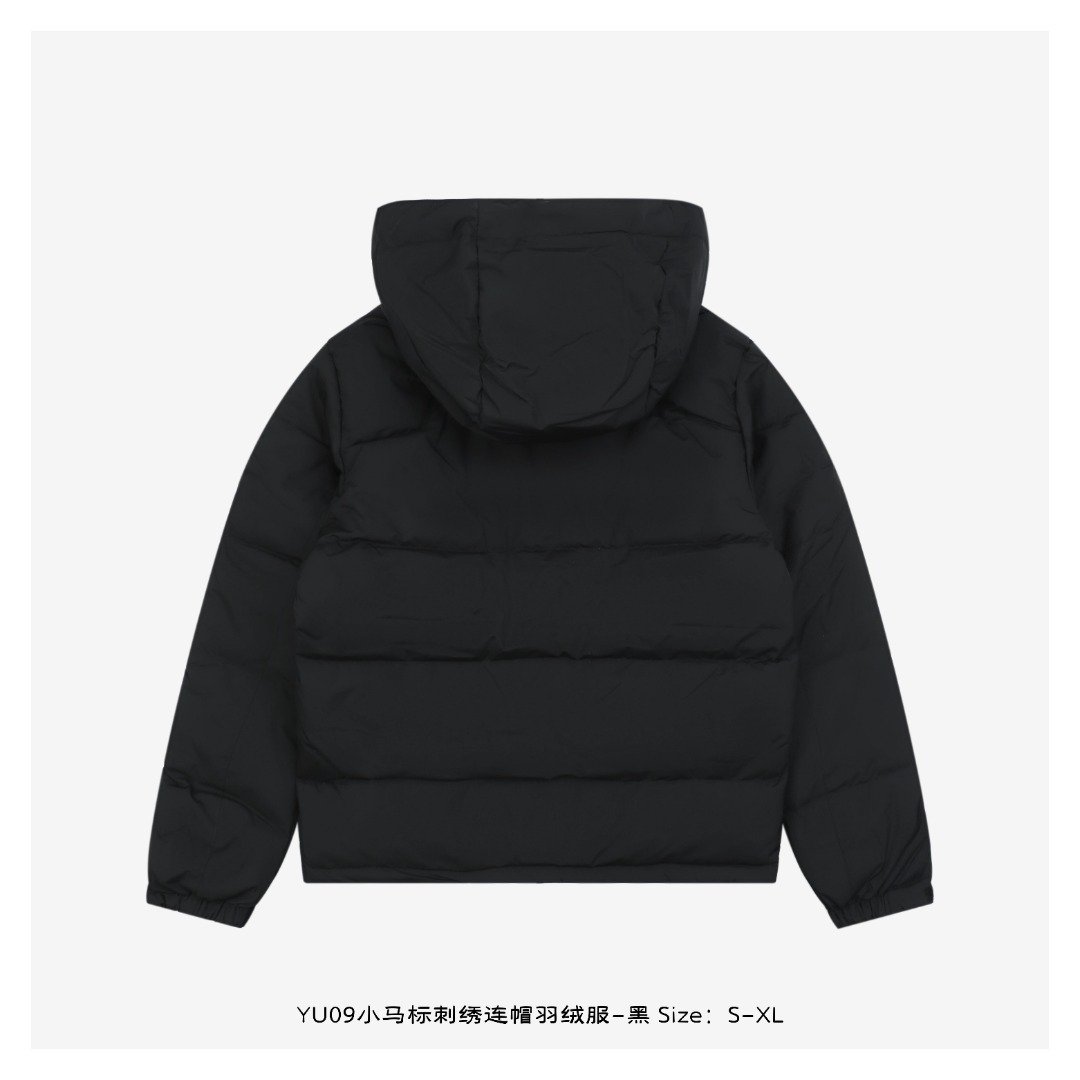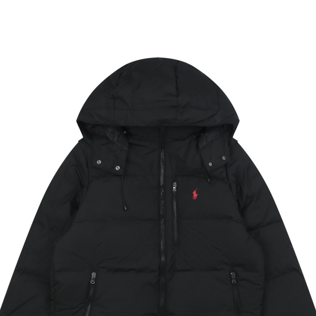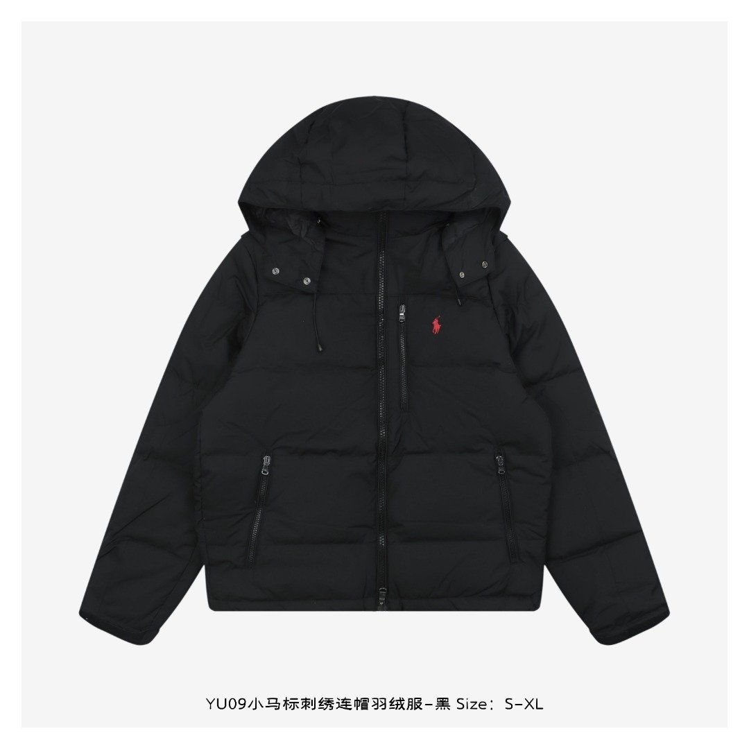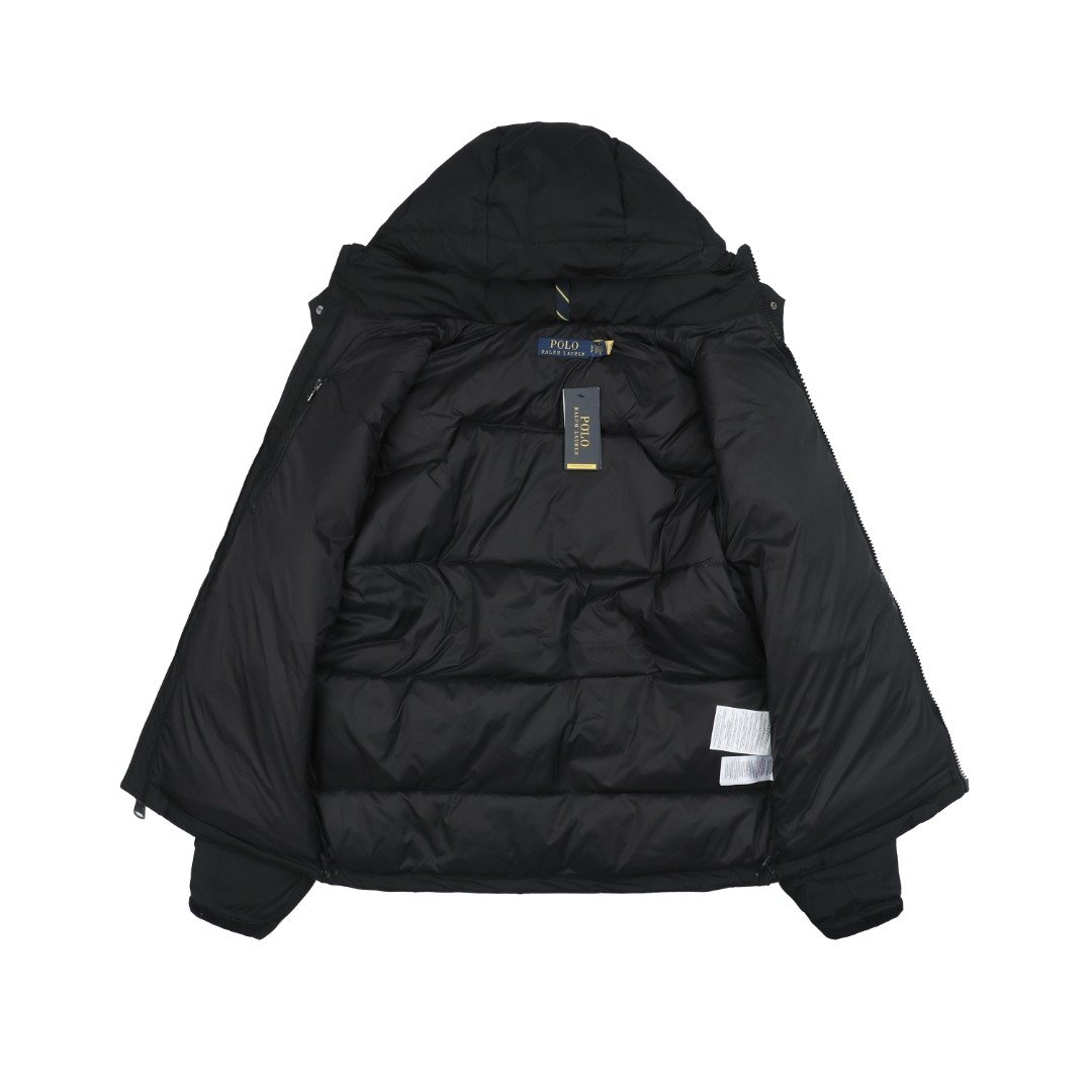 Ralph Lauren YU09 Pony Logo Embroidered Hooded Down Jacket – Black