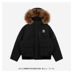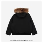 This third-generation workwear down jacket cleverly blends the brand’s deep baseball culture with modern street aesthetics. Its unique workwear design and relaxed fit make it stand out in winter wear, becoming a favorite among those seeking both quality and style. Filled with standard 50% white duck down, it boasts ample fill power, high loft, and superior warmth. The stand-up collar and hood feature a down-proof trim at the neckline. Windproof cuffs effectively block cold winds. Drawstrings at the waist and hem further enhance wind protection. A double-layer down-proof lining provides superior wind resistance. The fabric is made of 100% polyester fiber, offering excellent waterproof and windproof properties. This fabric causes water to bead up and roll off, preventing penetration and keeping the lining dry even after splashes. The lining is also made of polyester fiber, soft and comfortable, and features a double-layer down-proof inner lining and upgraded down-locking technology to effectively prevent down leakage and ensure the down jacket maintains its excellent condition for a long time. It’s paired with a genuine raccoon fur collar, using fur from the raccoon’s back; the fur is abundant, long, smooth, and fluffy, providing not only excellent warmth but also adding a touch of style. The fur collar is also detachable for easy adjustment as needed. Unisex