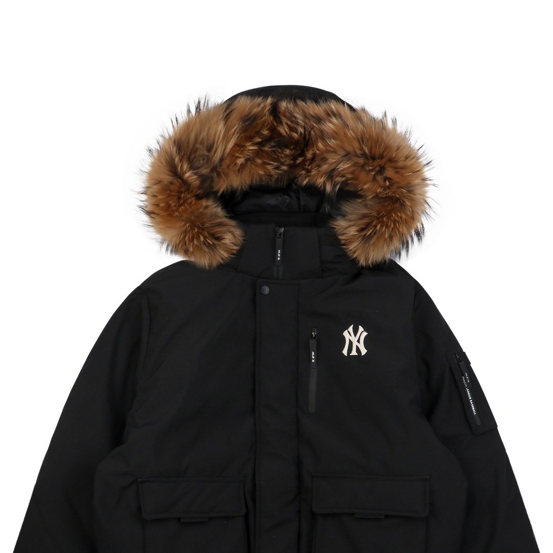 MLB 24Fw Third Generation Workwear Short Hooded Down Jacket with Fur Collar – Black