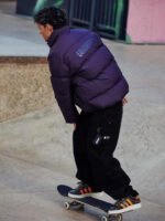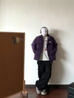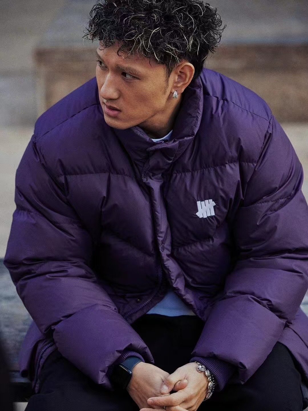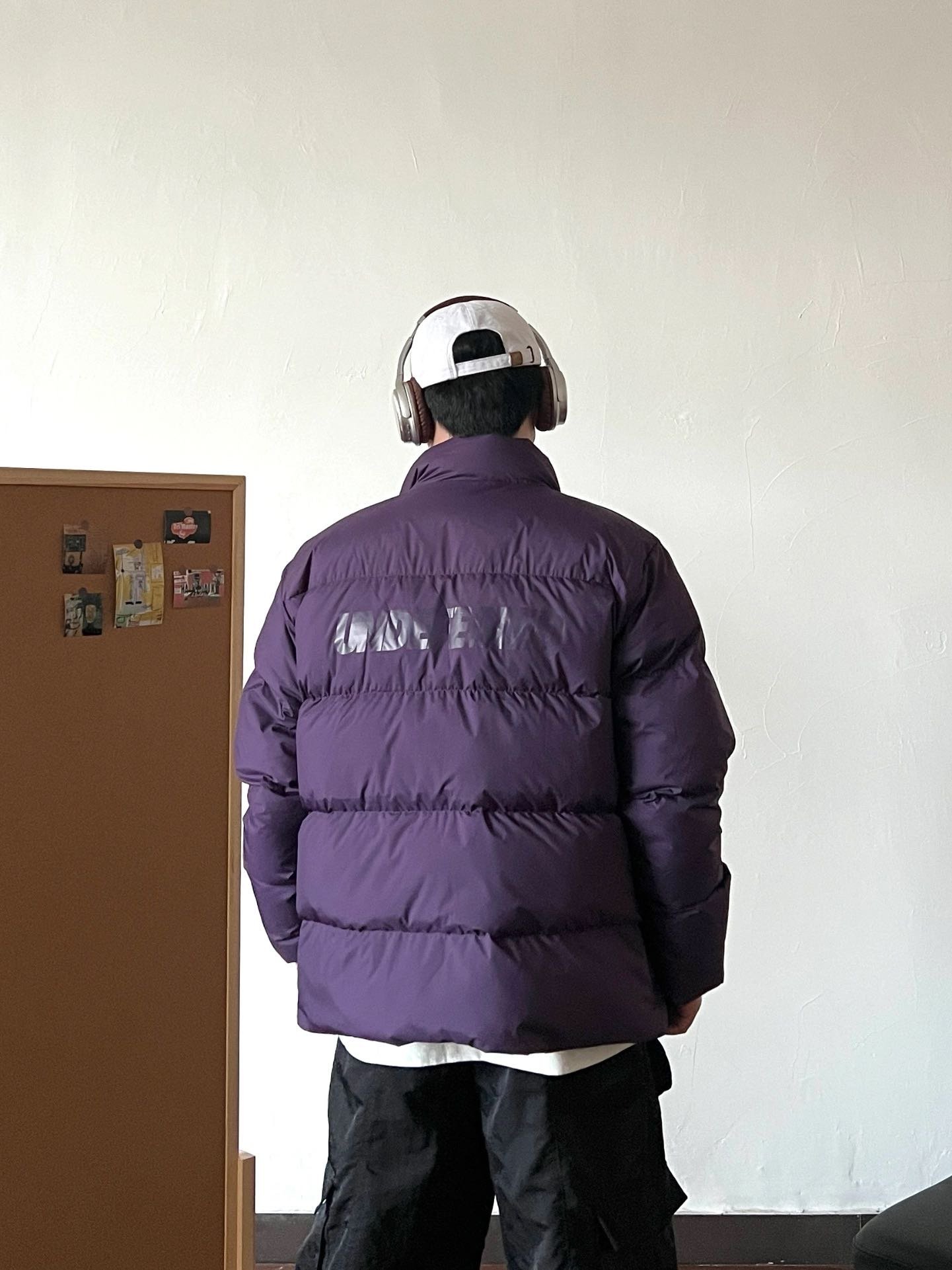 Undefeated five-stripe embroidered stand-up collar down jacket – purple