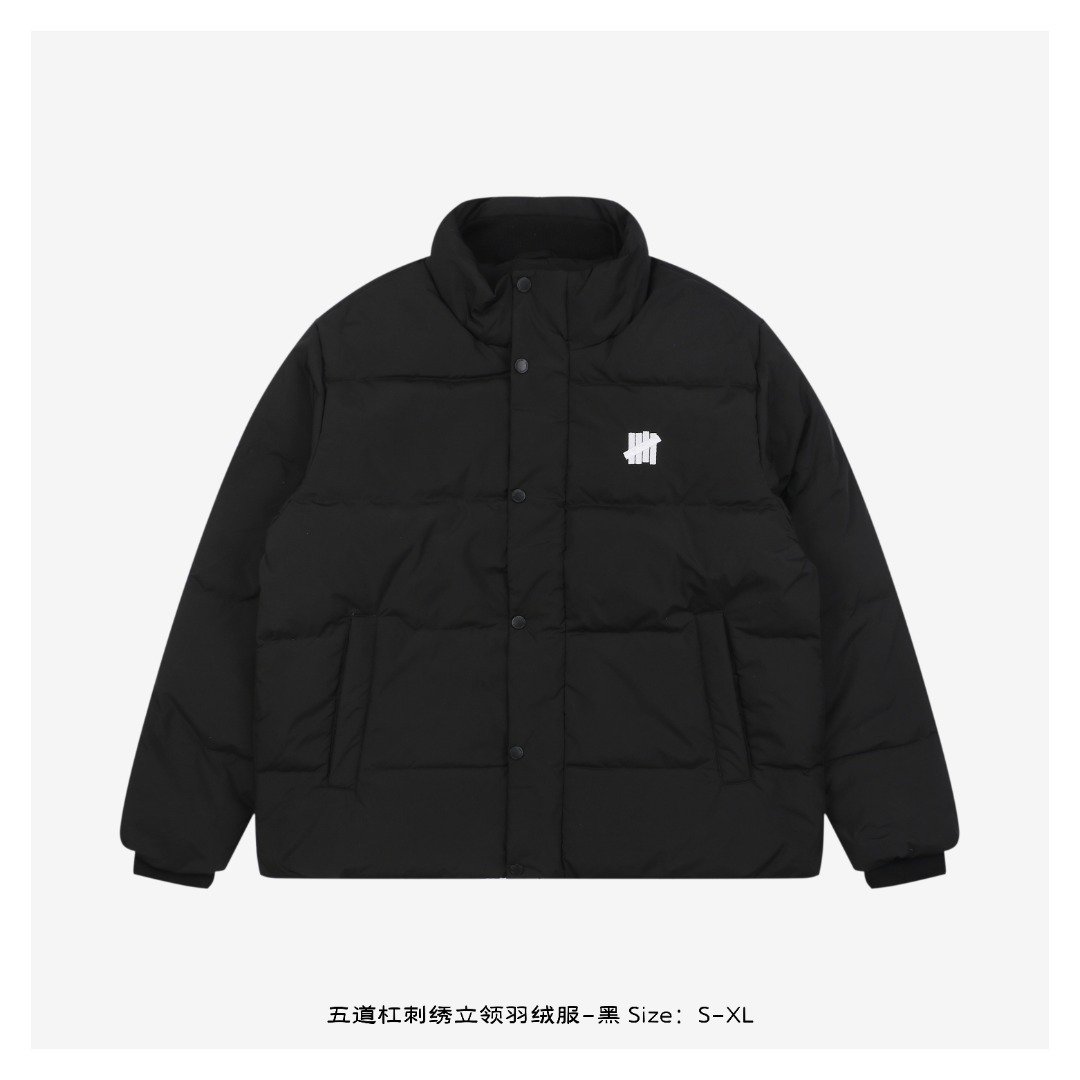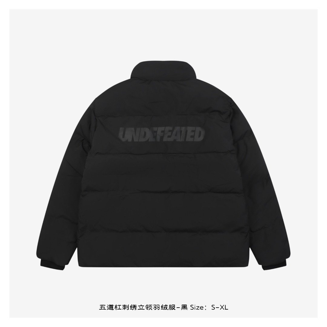 Undefeated Five-Stripe Embroidered Stand-Up Collar Down Jacket – Black
