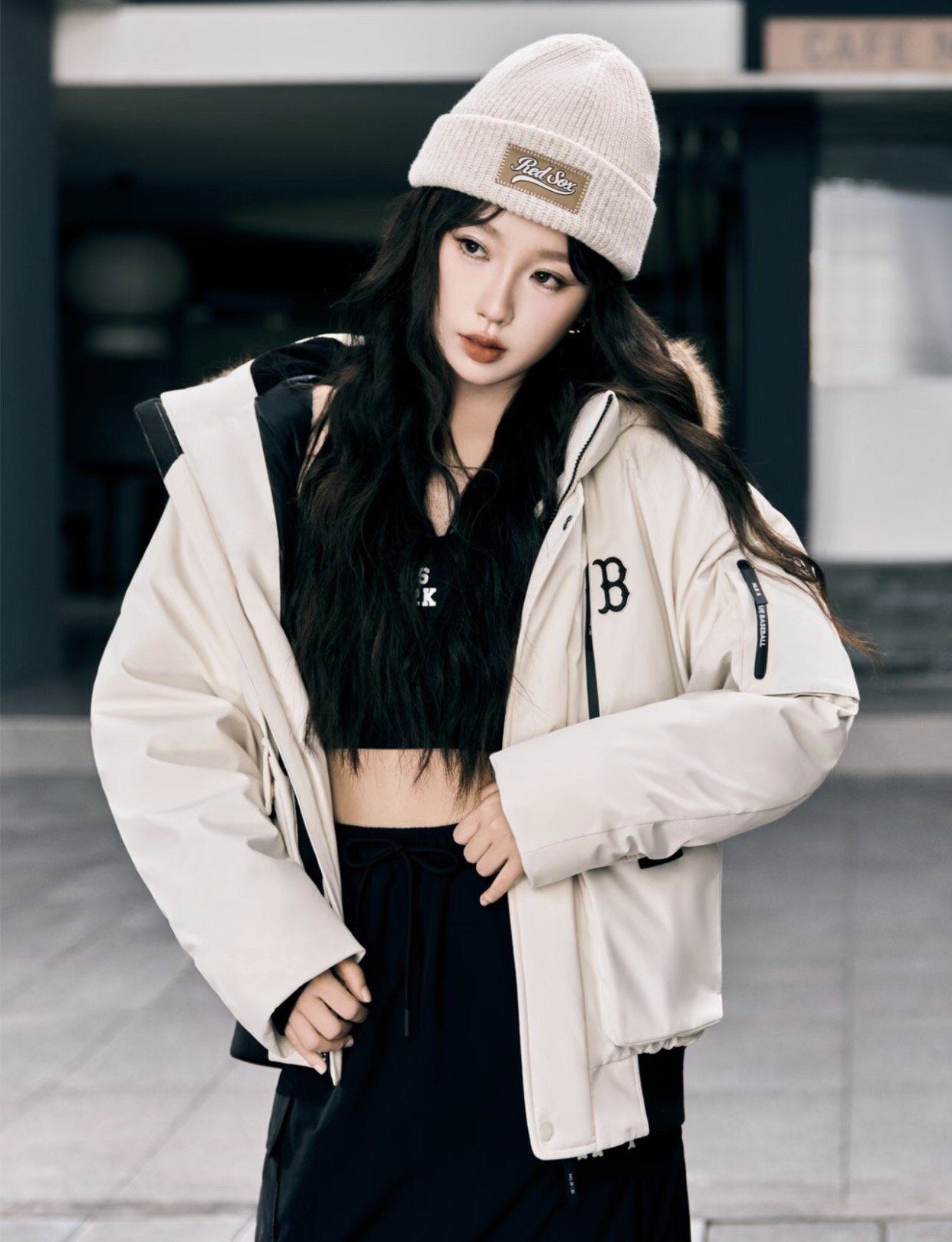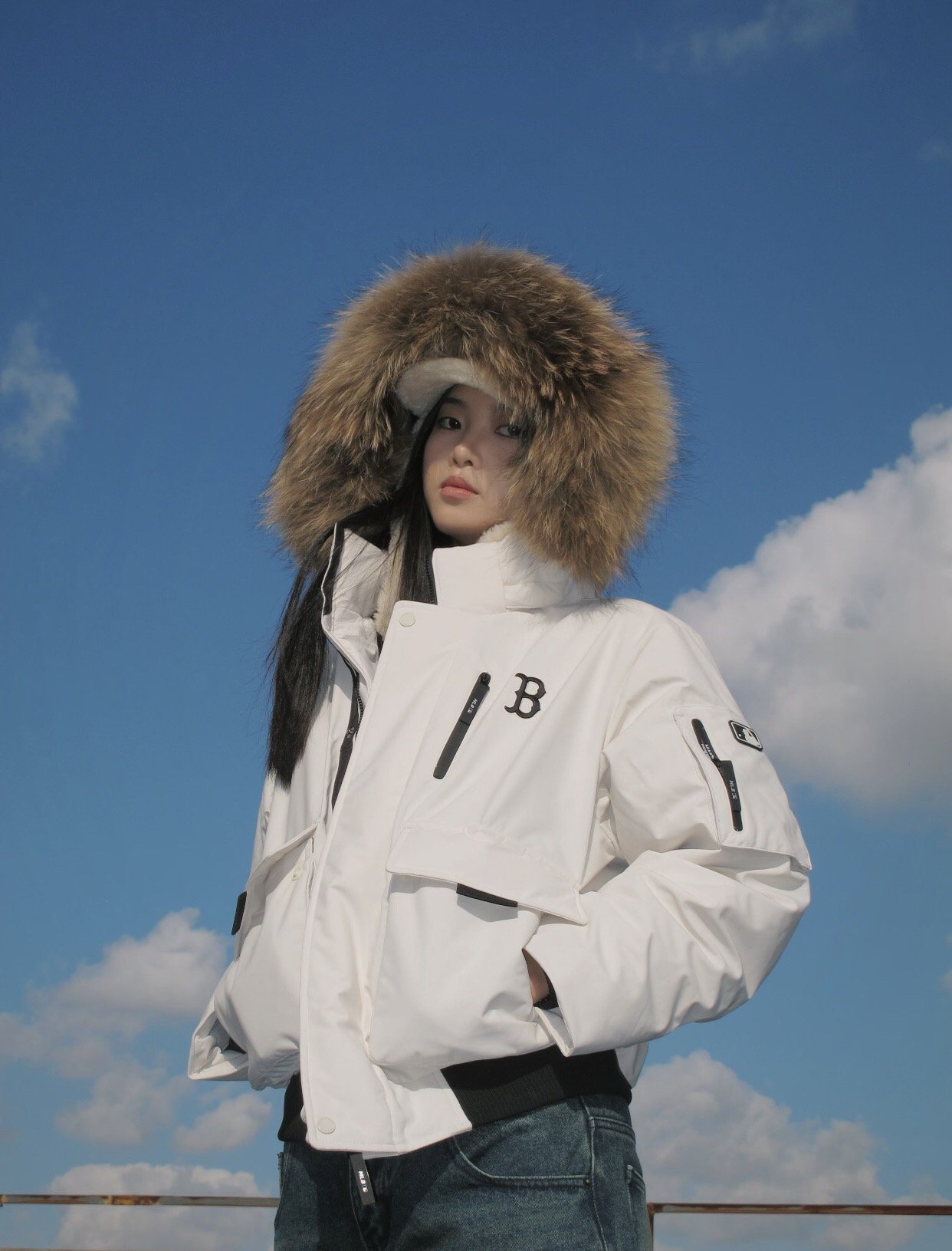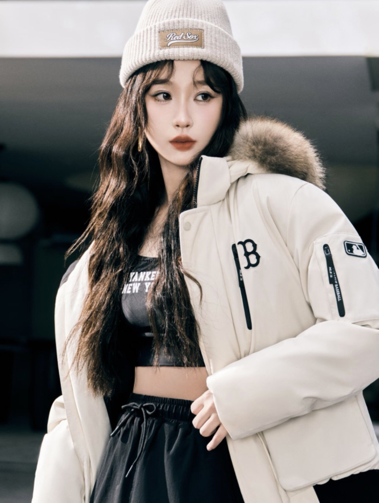 #MLB embroidered logo workwear fur collar down jacket upper body effect