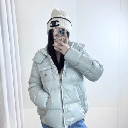 – Overall Style: The overall design is simple and stylish. The cropped silhouette is both smart and easy to move around in, making it suitable for everyday wear and a variety of occasions. Hood: The fully padded hood provides additional head protection while retaining warmth, enhancing the overall stylish look. Pocket Details: A flap pocket on the left chest is embellished with Moncler’s iconic brand emblem, adding brand recognition and a design highlight. Zipper Closure: The front zipper closure is easy to operate and complements the overall minimalist style.