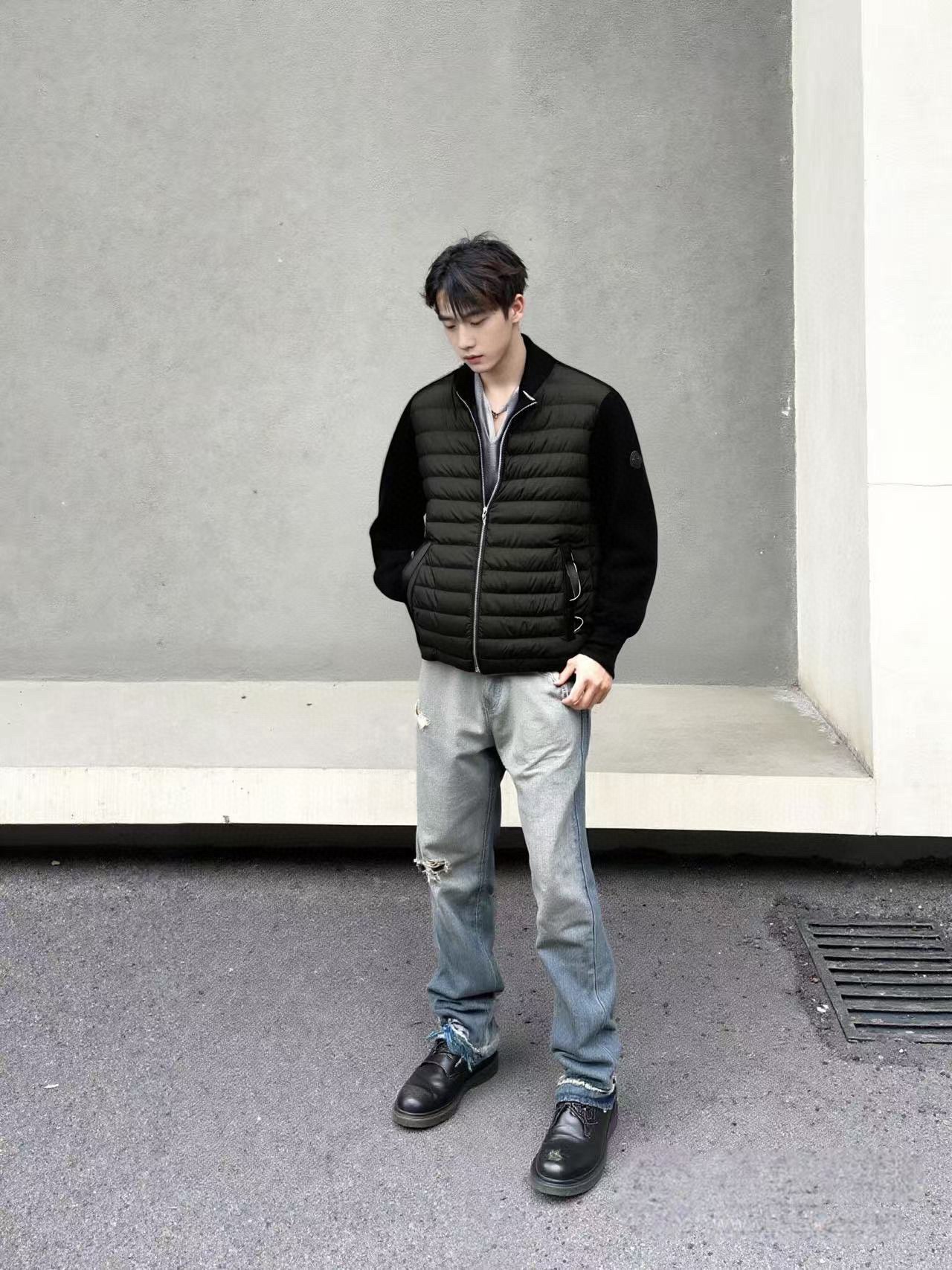 #Moncler/Moncler knitted patchwork lightweight down jacket upper body effect