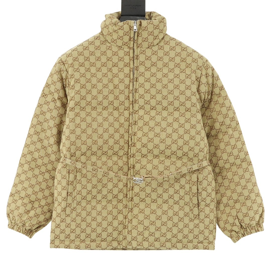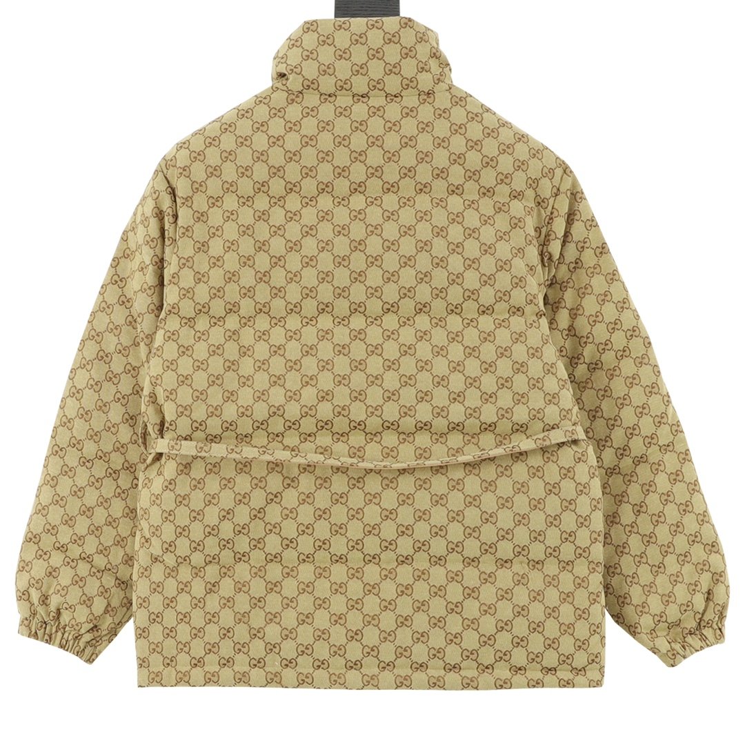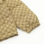 The iconic double G pattern print is simple yet recognizable, maximizing a sense of understated luxury. The classic colorway is 90% white duck down. The zipper zips smoothly, and the cuffs and hem are cuffed to effectively block cold air from seeping in.