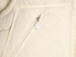 Removable sleeves, wide silhouette and short cut design, custom-made washed nylon fabric, Longuesaison lining, 90% down filling inside, hidden zipper closure with snap buttons, zipper pockets, elastic cuffs, drawstring hem. Camel and cream white