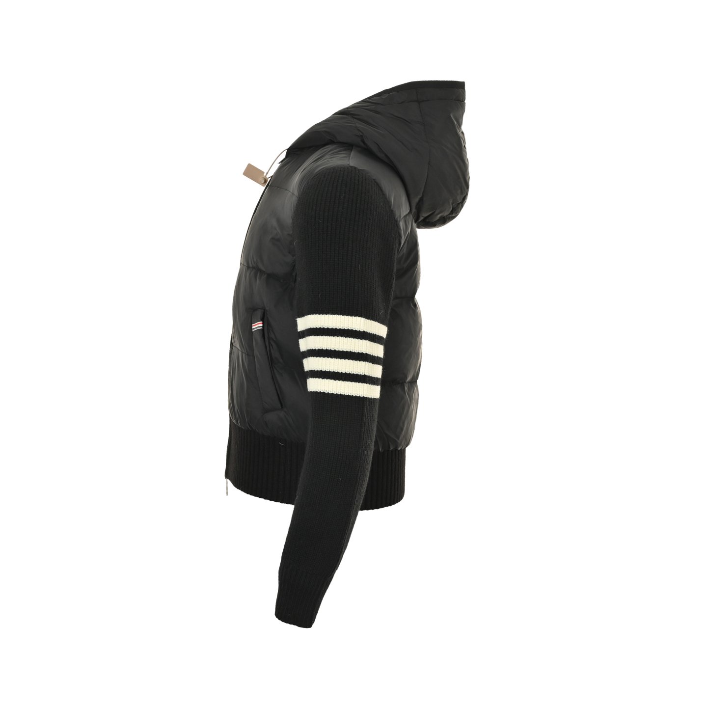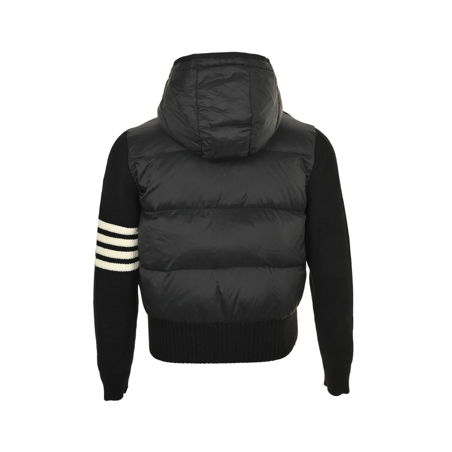 Thom Browne knitted patchwork four-stripe hooded 90s white duck down down jacket for women, casual preppy style
