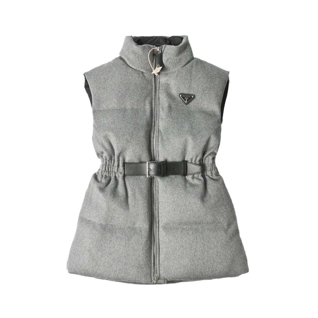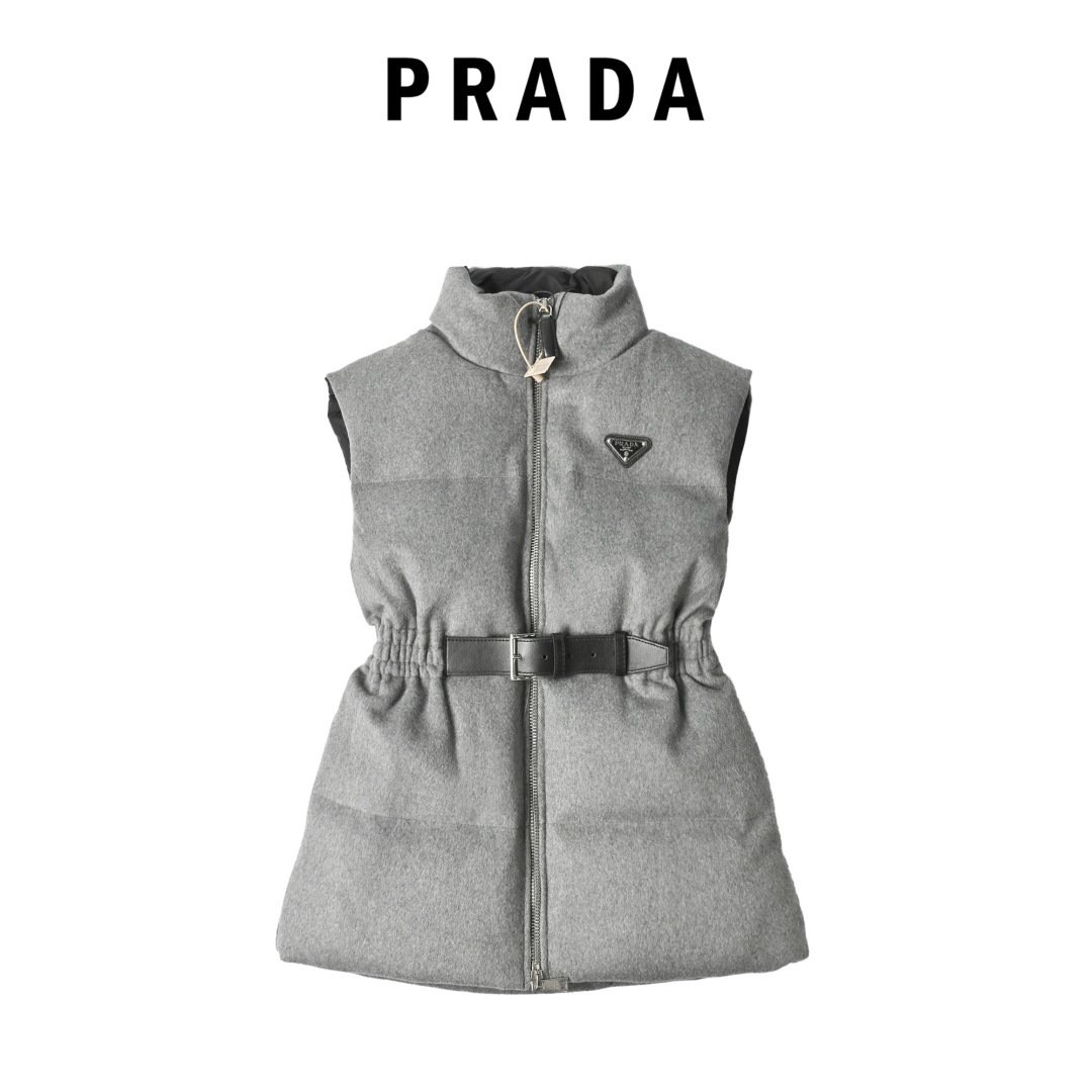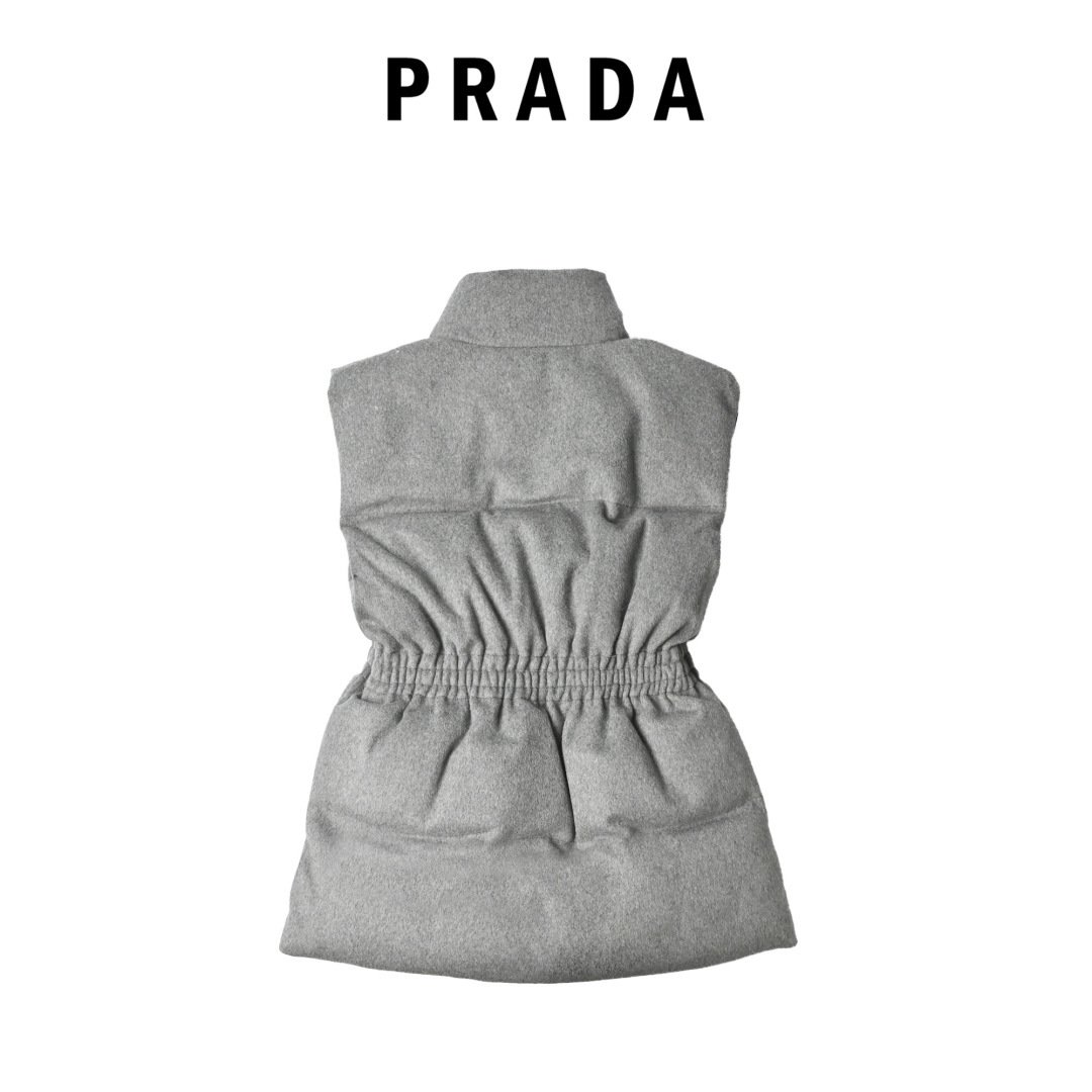 This PRADA autumn/winter waisted down jacket features a black outer shell and white goose down filling for maximum warmth! The stand-up collar and belted waist design create a slimming effect, while the H-shaped cut flatters the figure. The wool fabric is luxurious and stylish, perfect for commuting and leisure. Pair it with jeans or boots for an effortlessly minimalist look. A versatile autumn/winter wardrobe essential!