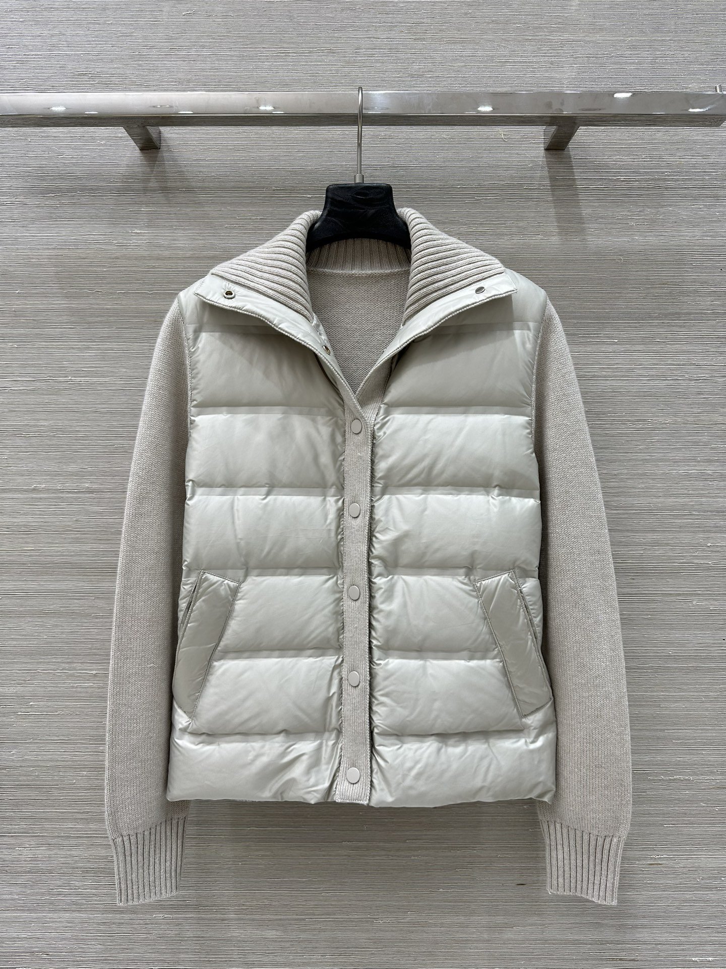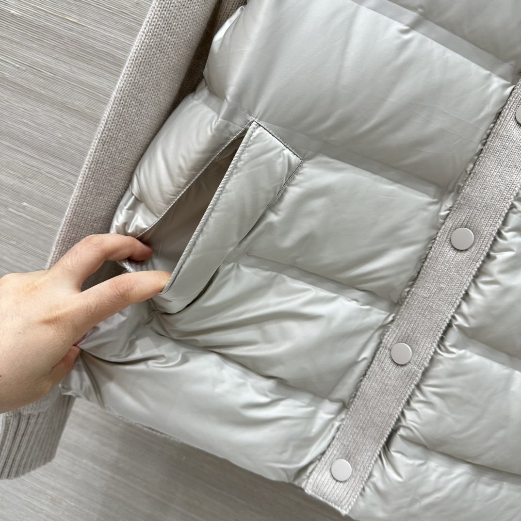 Exclusive first-run, original quality ❤️ A must-buy for quality lovers! LP’s trendy, vintage-inspired style, new arrival for Fall/Winter 25. Double-pocket knitted goose down jacket! The perfect lightweight winter down jacket! Made from premium virgin wool with a gold thread design, patchwork goose down filling, and quilted detailing – the simpler the style, the more demanding the quality. The cuffed hem creates a super slimming effect! A casual and effortless look creates a sophisticated Italian elegance. Perfect quality is in the details. Available in three colors and three sizes – come here if you’re a connoisseur!